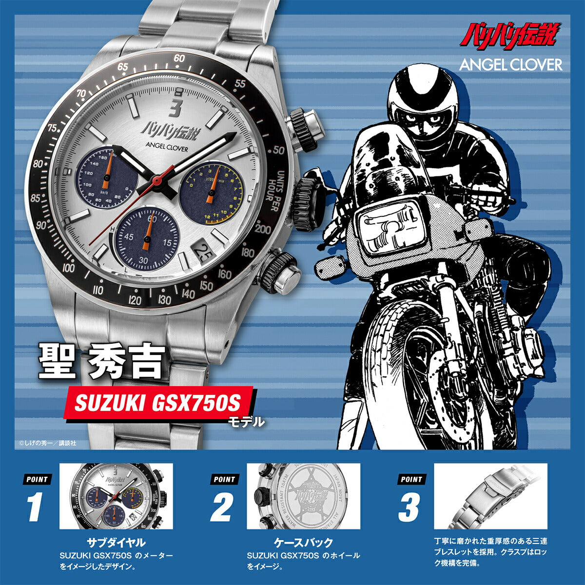 《4月17日発売/予約》エンジェルクローバー バリバリ伝説 コラボレーションモデル 聖 秀吉 SUZUKI GSX750S KATANA BA40-HI メンズ ソーラー クロノグラフ