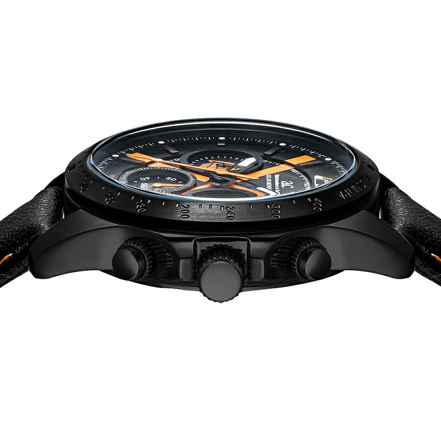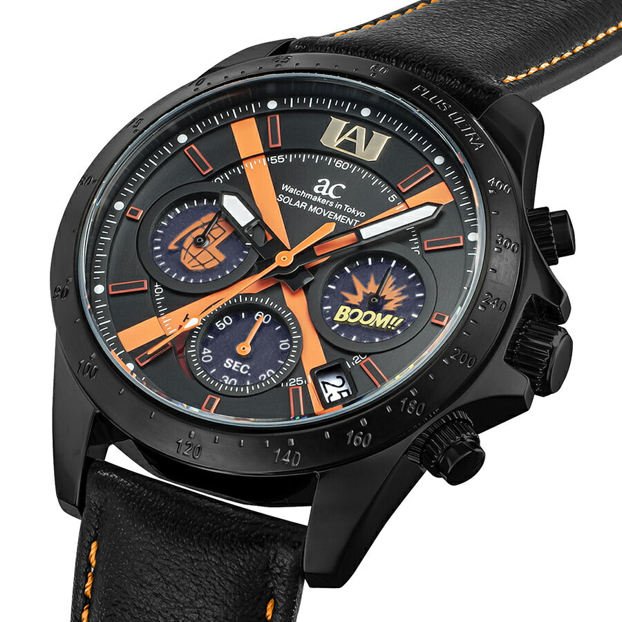 こちらのモデルは、爆破の“個性”を持つ爆豪勝己をモチーフにデザイン。3時位置と9時位置のサブダイヤルには、手榴弾と爆破エフェクトに「BOOM!!」の文字を大胆に配置しました。