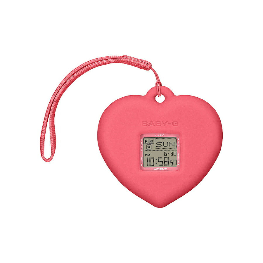 自分の好みに合わせて使い方が楽しめる「BABY-G+PLUS」シリーズから、ハート型の時計ホルダーを採用したポップなモデルです。