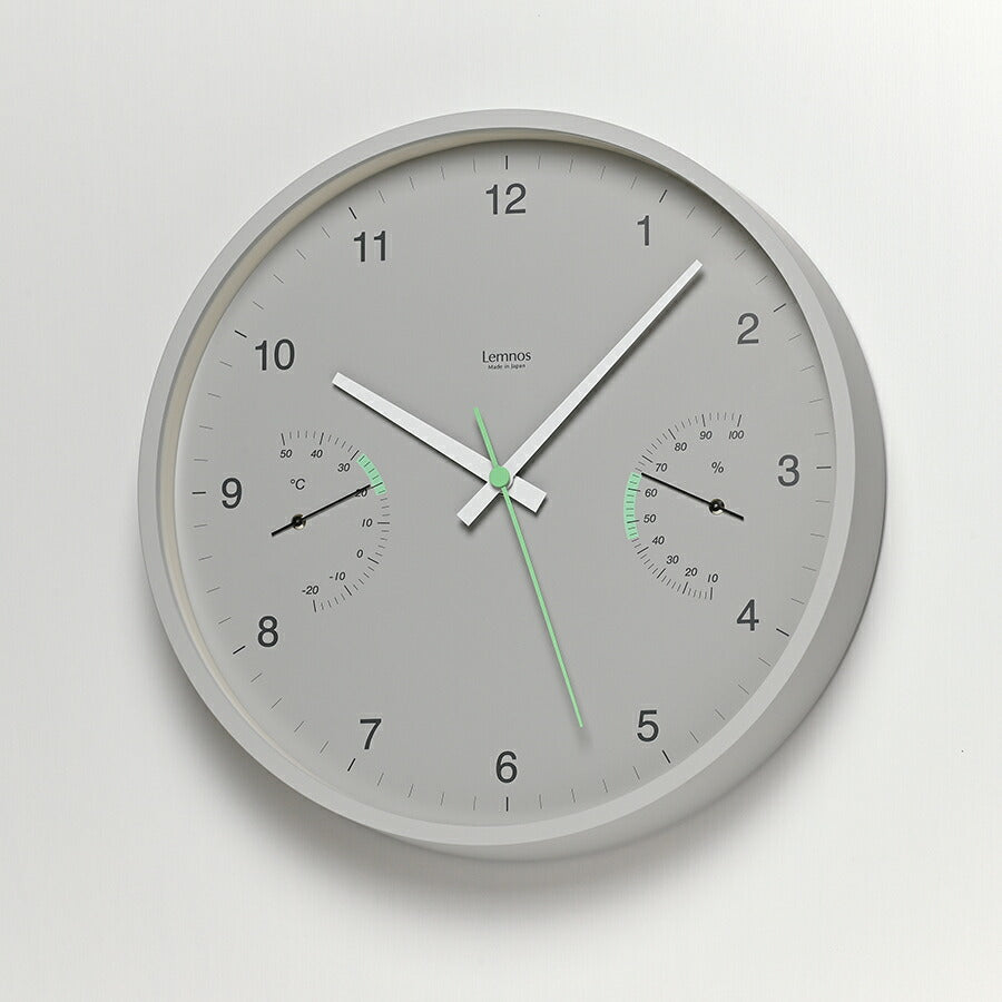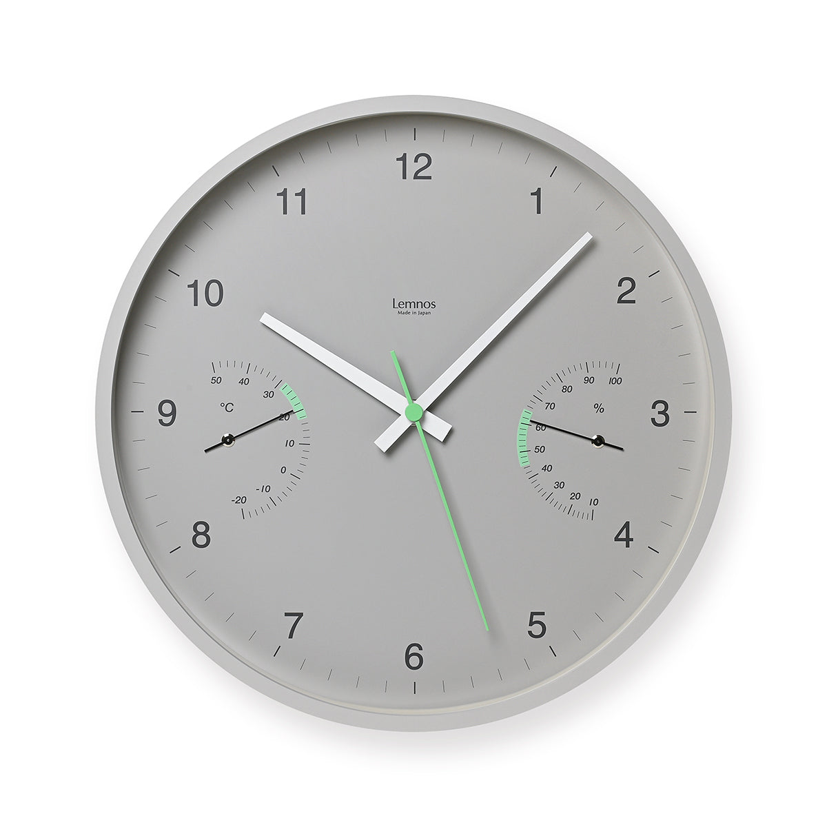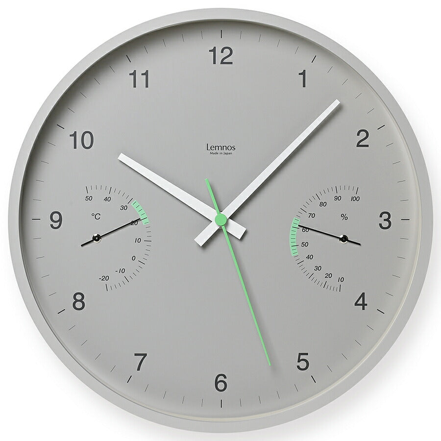 タカタレムノス 掛け時計 カーサ ブローテ 温湿度計付 クオーツ 電池式 グレー スイープセコンド LC24-05GY