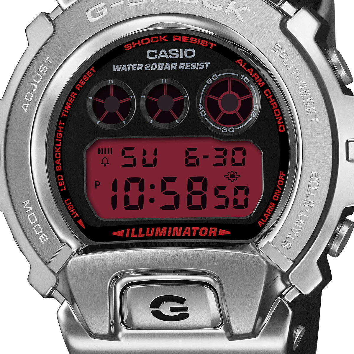 《2月13日発売》G-SHOCK メタルカバード ファインメタリックシリーズ シルバー GM-6900YRA-8JF メンズ 電池式 デジタル 樹脂バンド レッドカラー液晶