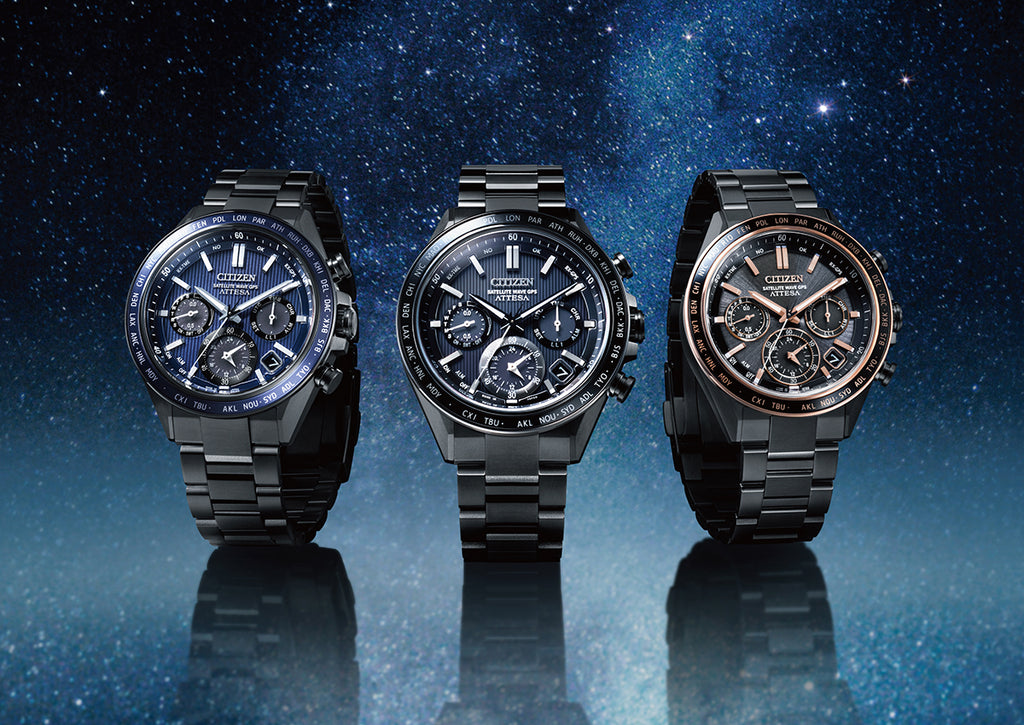 シチズン アテッサ アクトライン ブラックチタン CC4059-64L メンズ ソーラー GPS衛星電波 クロノグラフ サファイアベゼル ブルーダイヤル