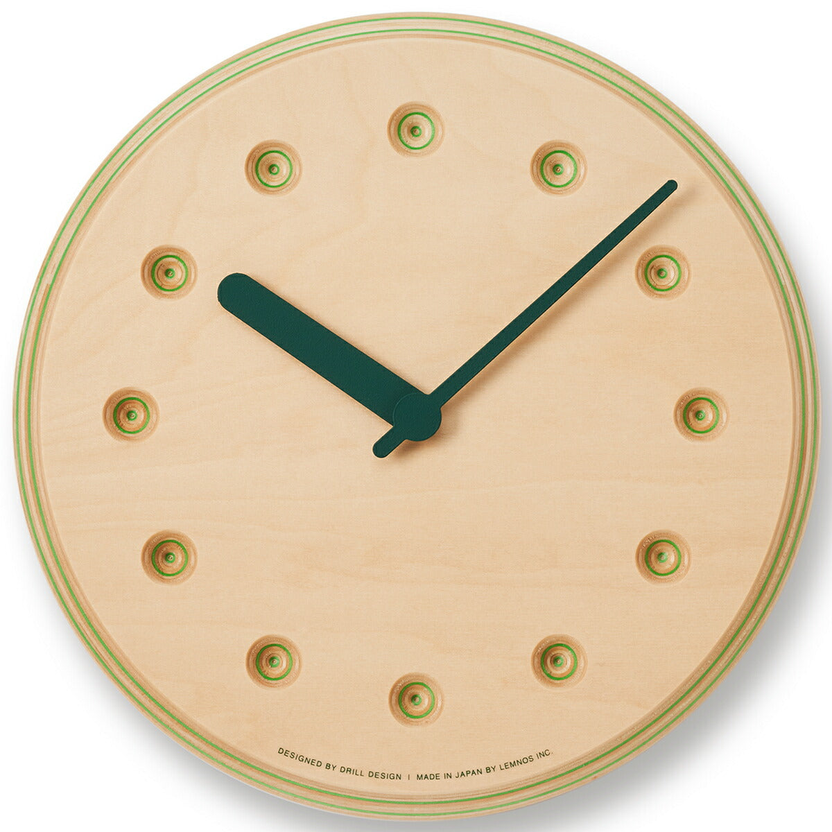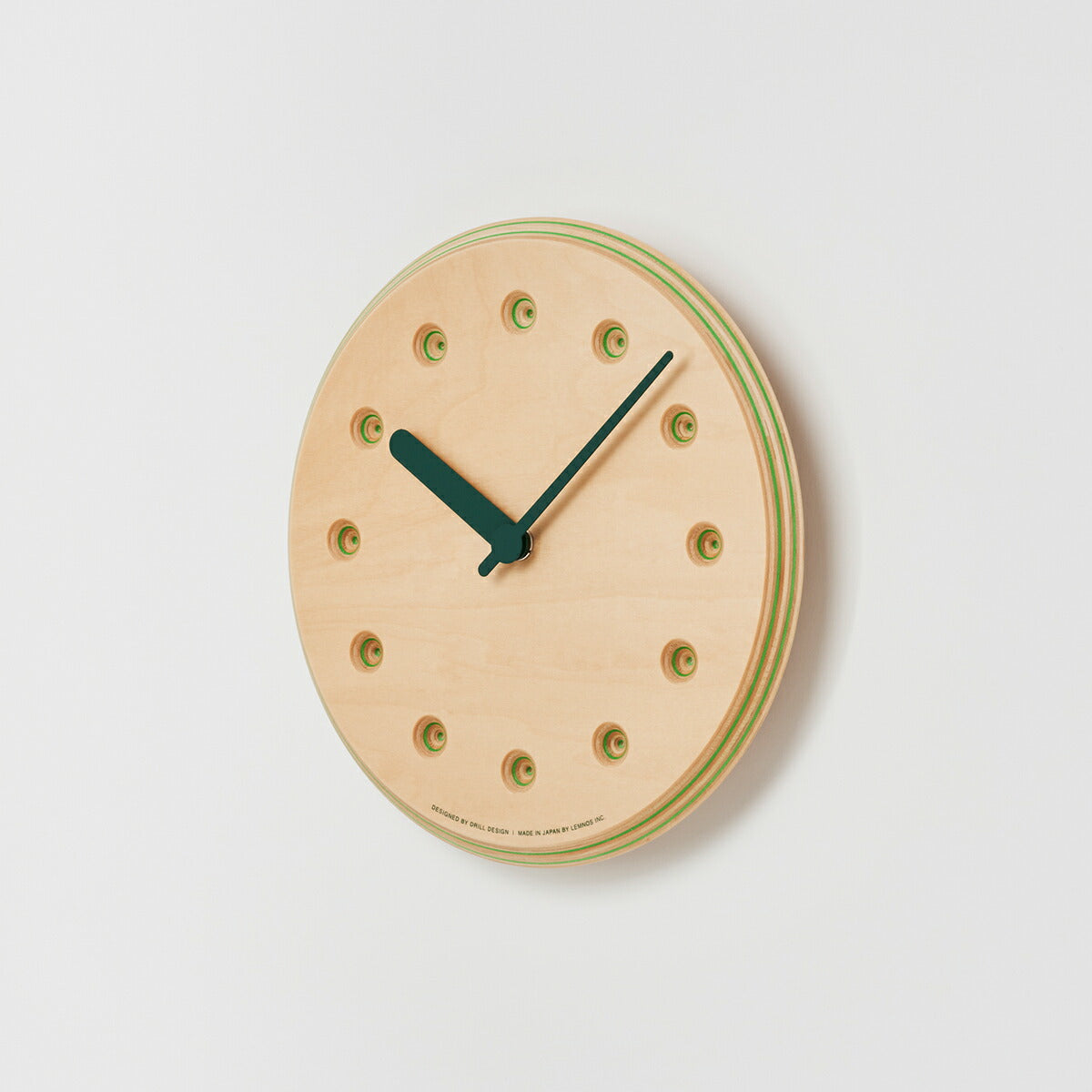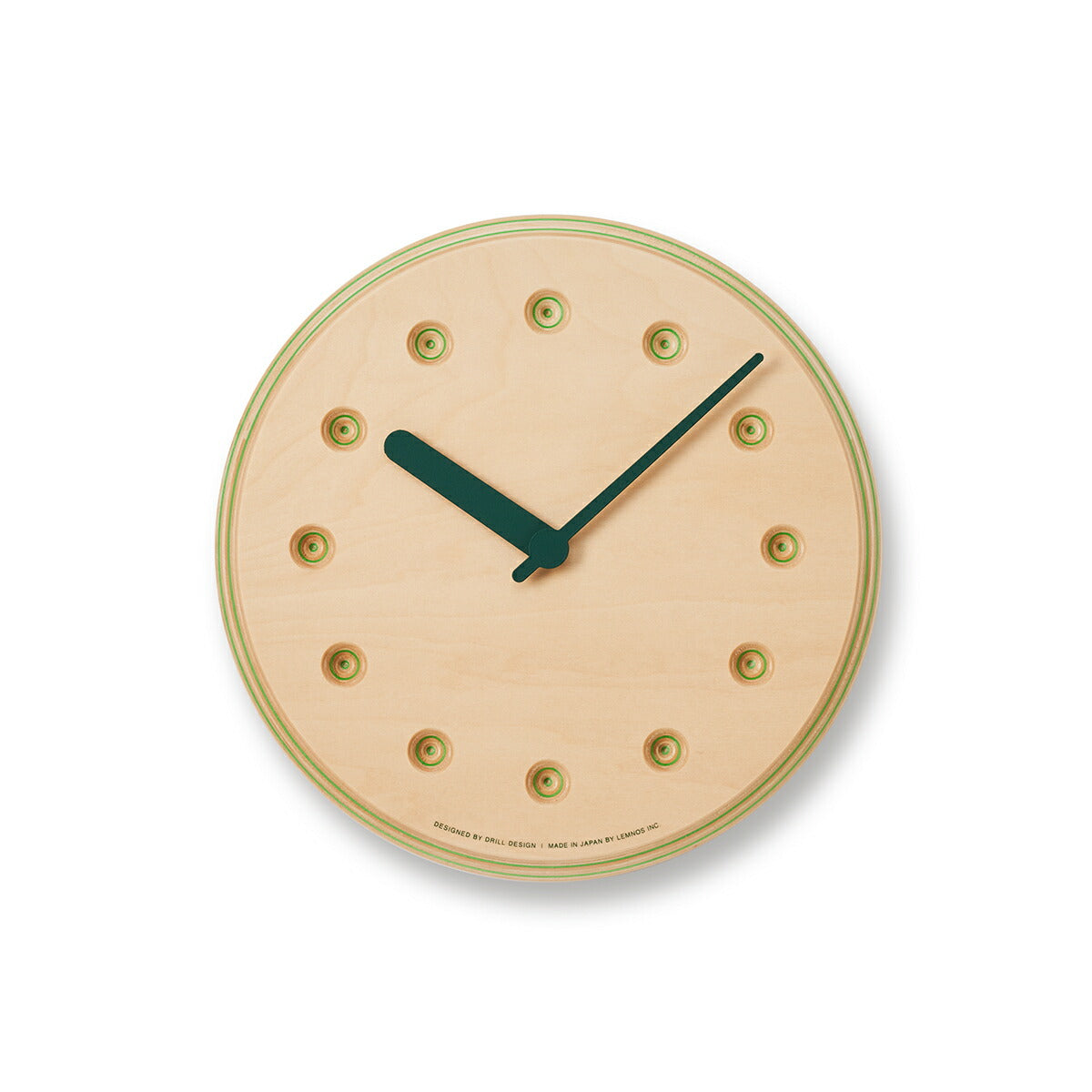 タカタレムノス 掛け時計 デザインオブジェクト ペーパーウッド クロック 22mm クオーツ 電池式 グリーン ドット DRILL DESIGN DRL19-07GN