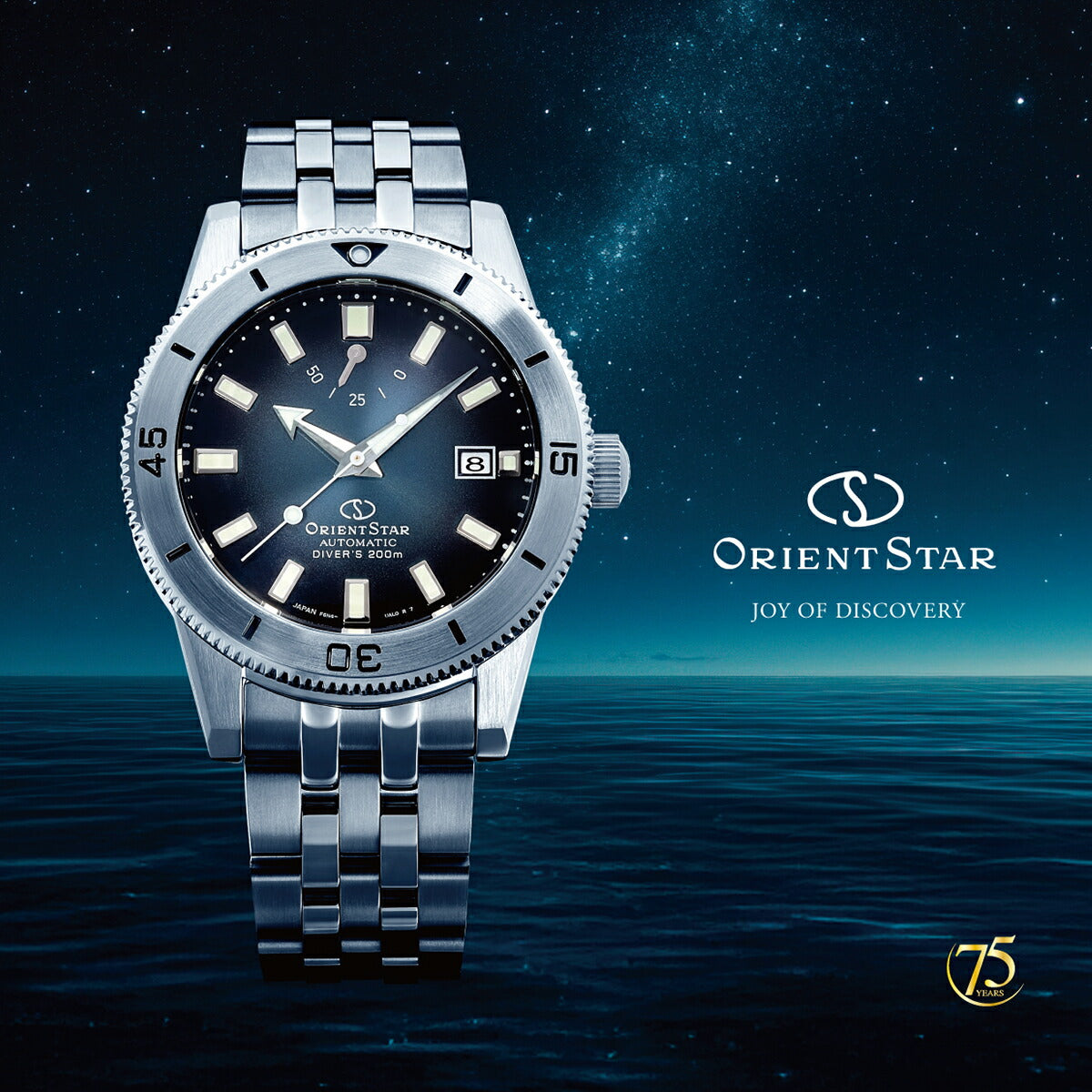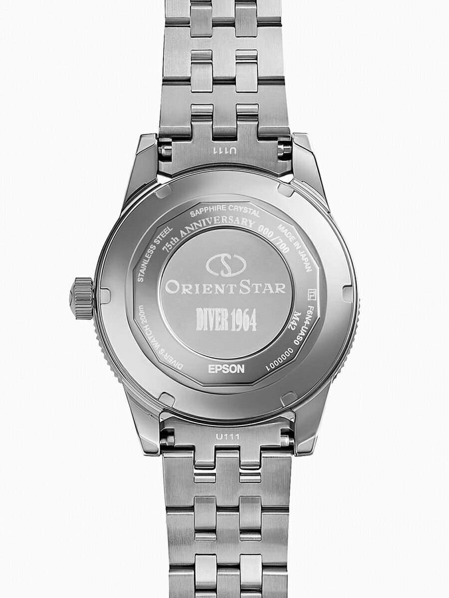 | その他仕様 | 裏ぶた「Orient Star 75th Anniversary」表記 裏ぶたシリアルナンバー入り 逆回転防止ベゼル ねじ込み式りゅうず スクリューバック |