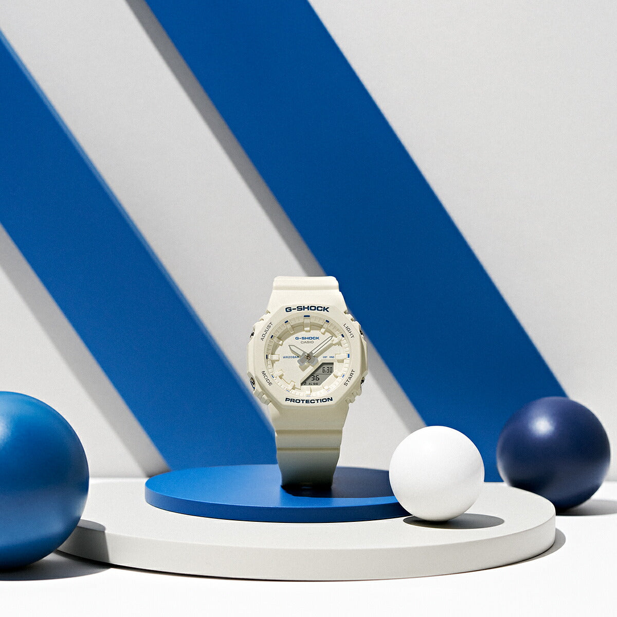 《1月10日発売/予約》G-SHOCK プチサイズ ブルーアクセントシリーズ GMA-P2100BA-7AJF レディース 電池式 アナデジ オクタゴン 樹脂バンド アイボリー