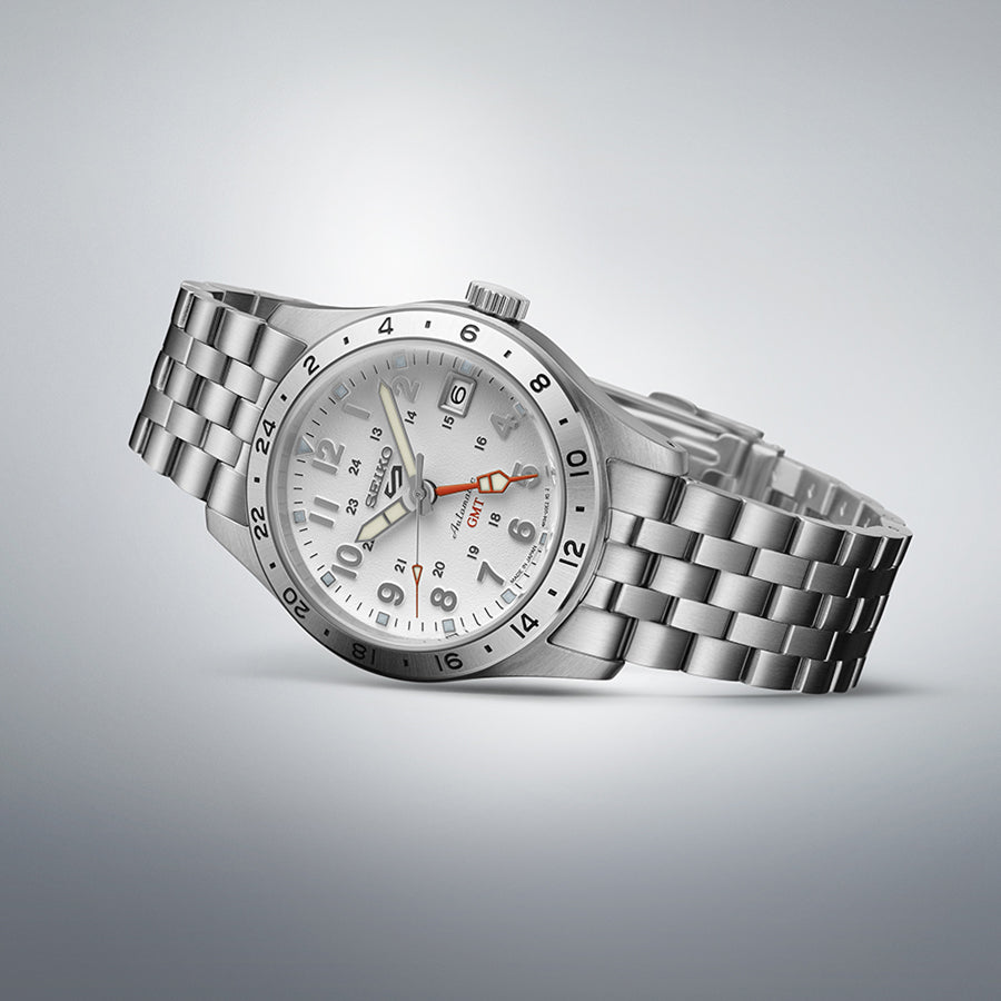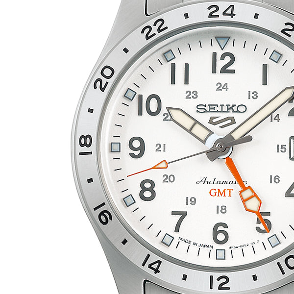 セイコー 5スポーツ フィールド GMT スポーツスタイル SBSC009 メンズ メカニカル 自動巻き ホワイトダイヤル メタルバンド 日本製