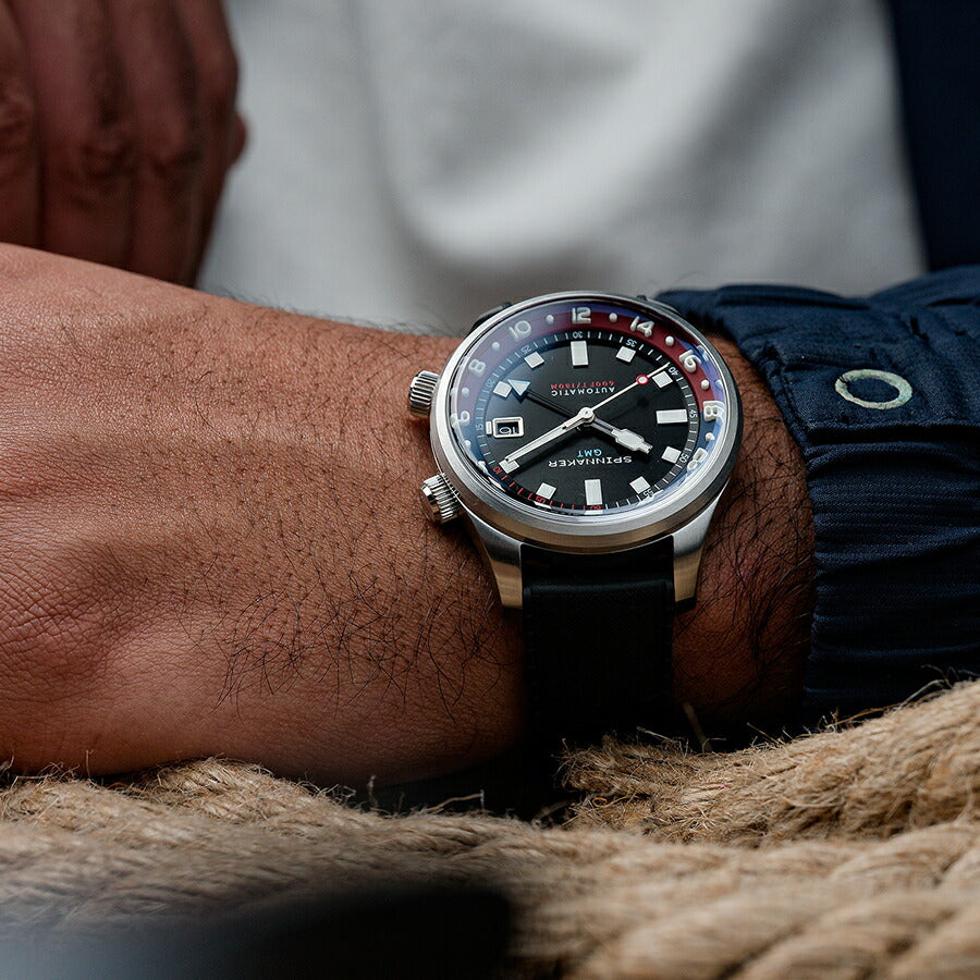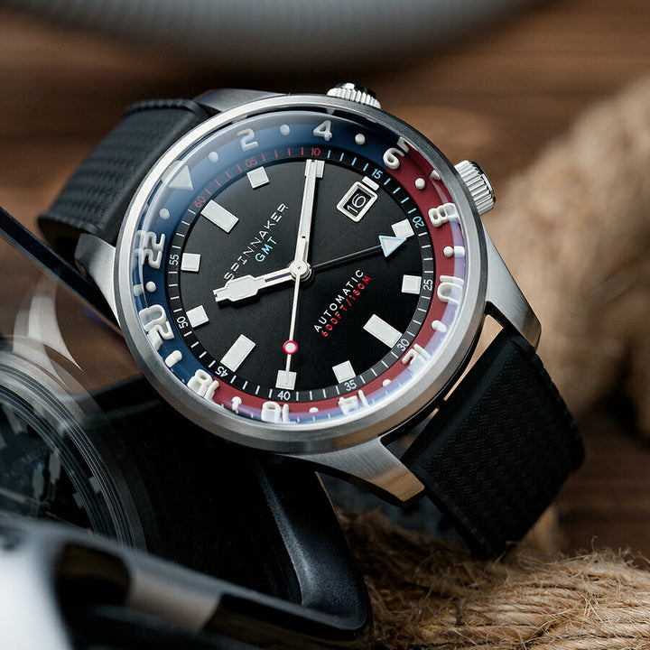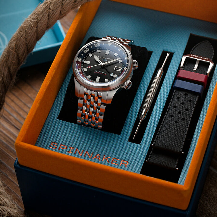 スピニカー ブラッドナー GMT オートマチック SP-5121-55 メンズ メカニカル 自動巻 ブラックダイヤル 替えバンド付き