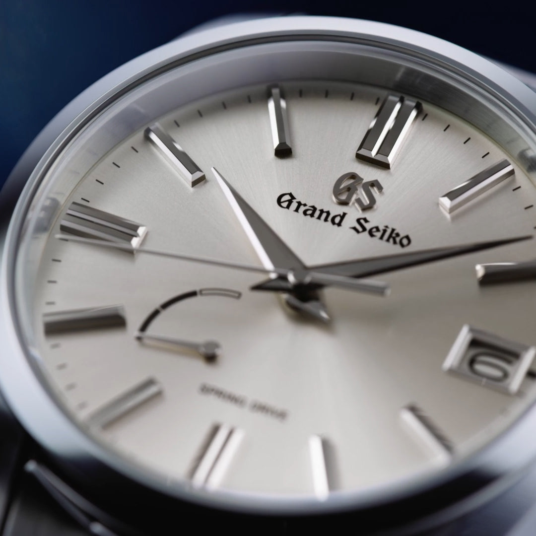 搭載されているムーブメントはグランドセイコー独自のスプリングドライブです。音もなく、ダイヤルの上を滑るように動く秒針は、スプリングドライブならではの特徴のひとつです。