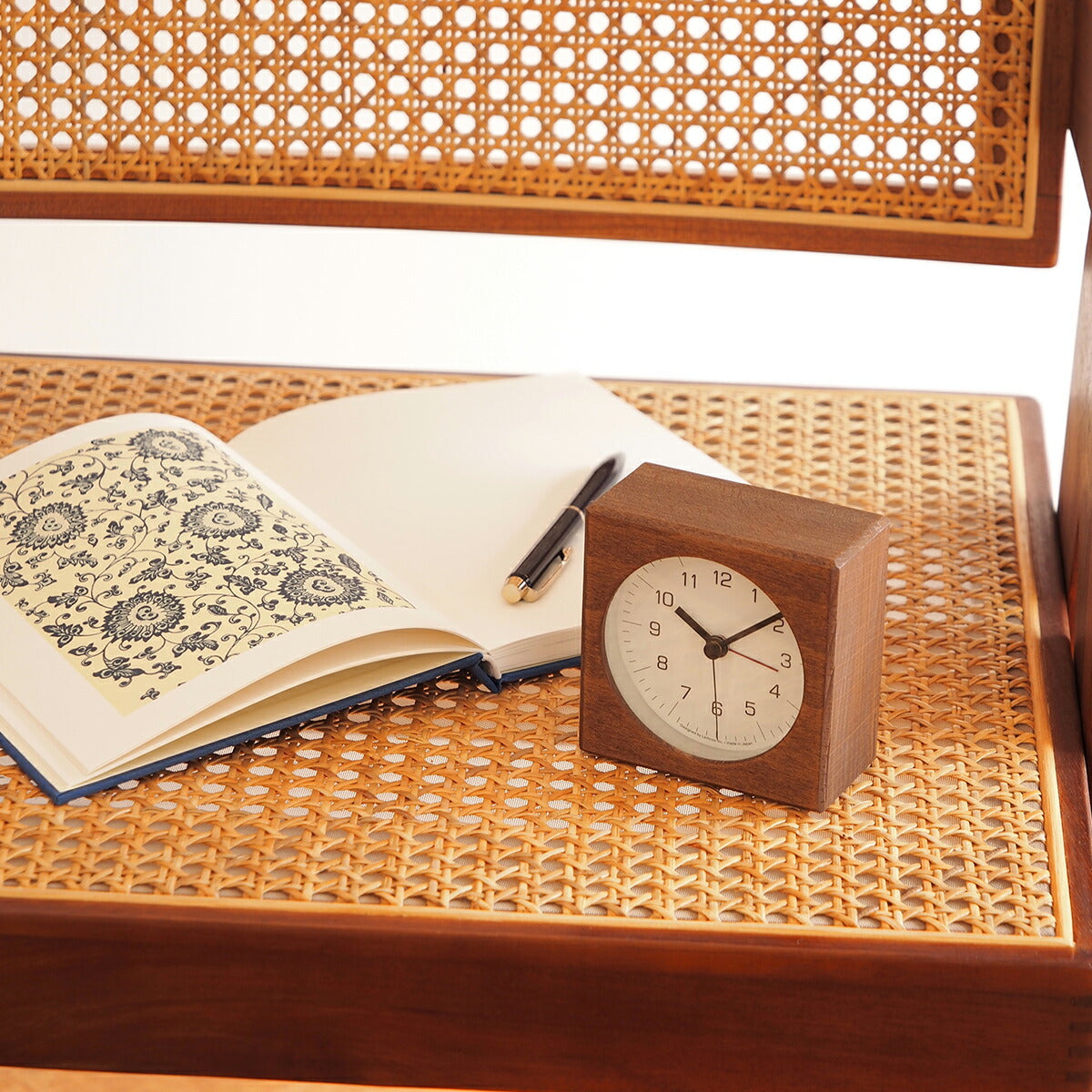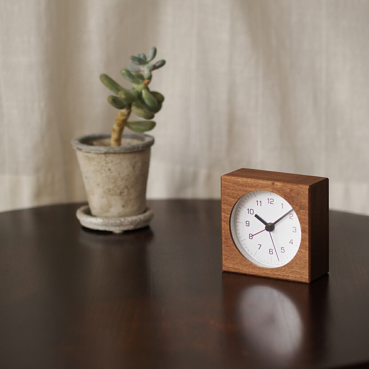 積み木のような形と優しい木の温もりは、 遠い記憶に触れてくるような懐かしさが感じられます。数字を少し内側に配置して斜めから見ても時刻が分かりやすいようにデザインしました。