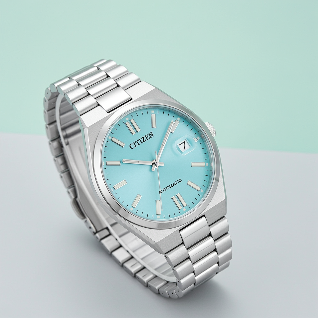 海外では“TSUYOSA”Collectionの愛称で親しまれ、人気を博しているモデル。発色の良い文字板にシンプルでベーシックな針とインデックスを組み合わせ、すっきりとしたデザインが魅力の機械式時計です。スポーティなケース形状と腕なじみの良い3列バンドで付け心地の良さにもこだわり、カレンダー部分には視認性を高める拡大鏡レンズを採用しました。シースルーバックの裏ぶたで、機械式時計ならではの回転する錘(おもり)やメカの動きを楽しめます。