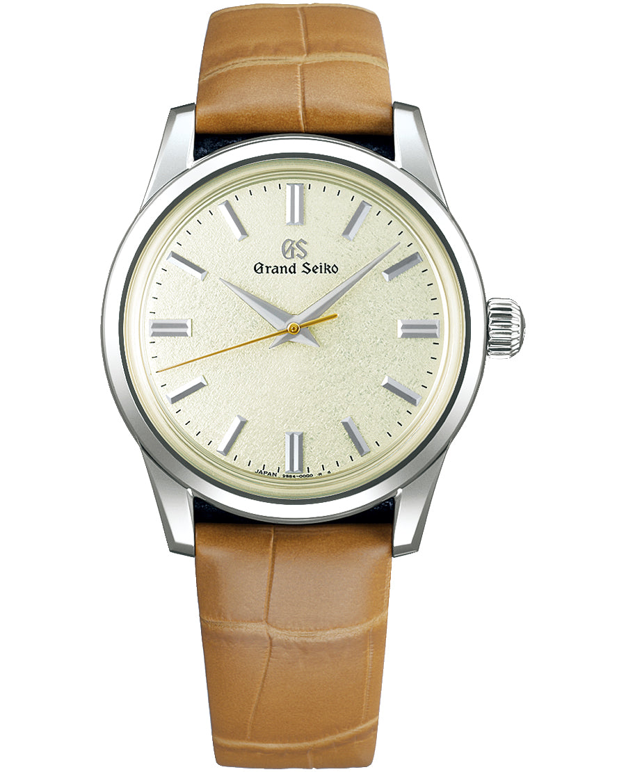 グランドセイコースタジオ 雫石で匠によってひとつひとつ手を尽くされた手巻のムーブメントCal. 9S64を搭載した薄型のフォルムが、腕周りをすっきりと演出します。