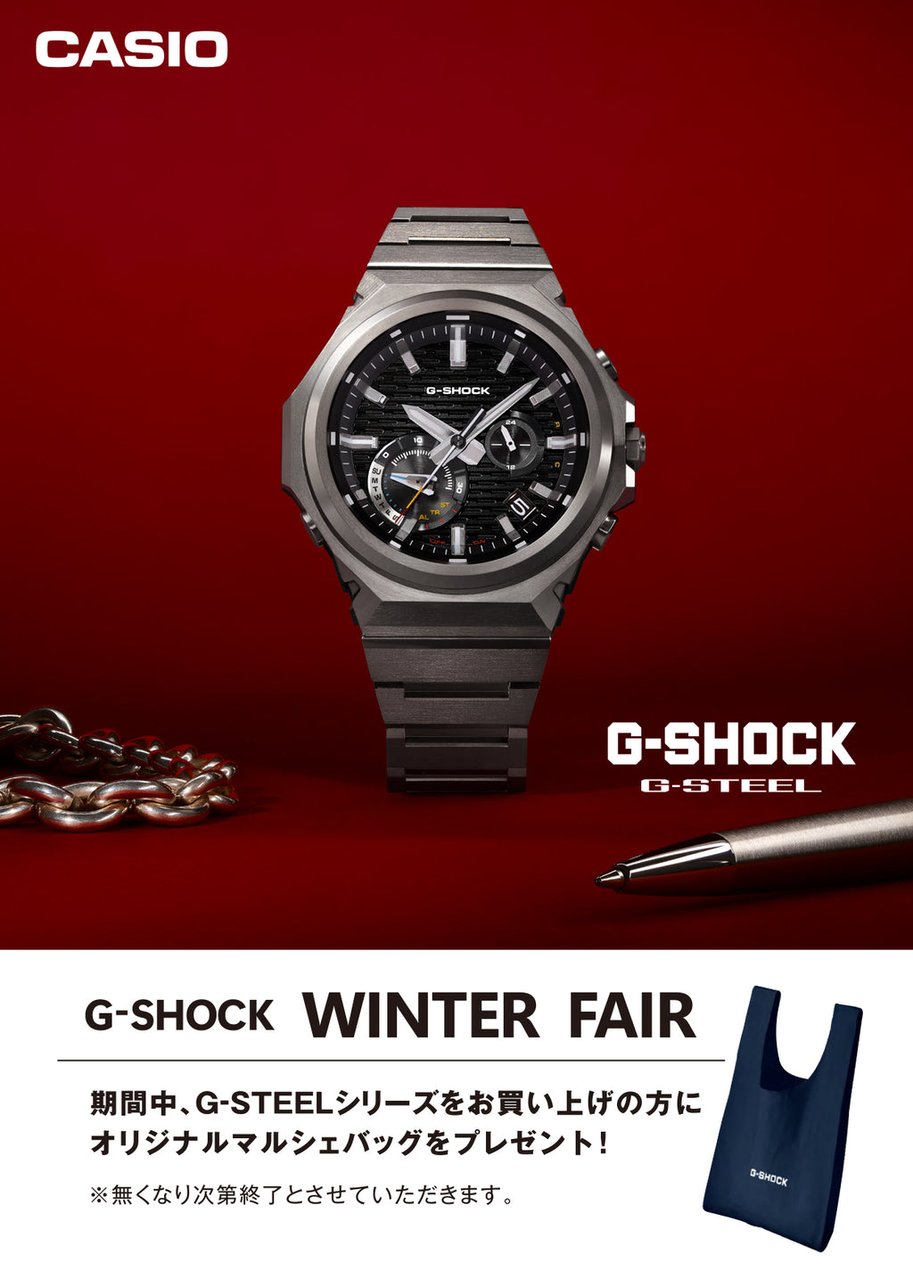 メタルと樹脂という異素材を融合し、タフネスとデザイン性を両立したG-STEELシリーズです。