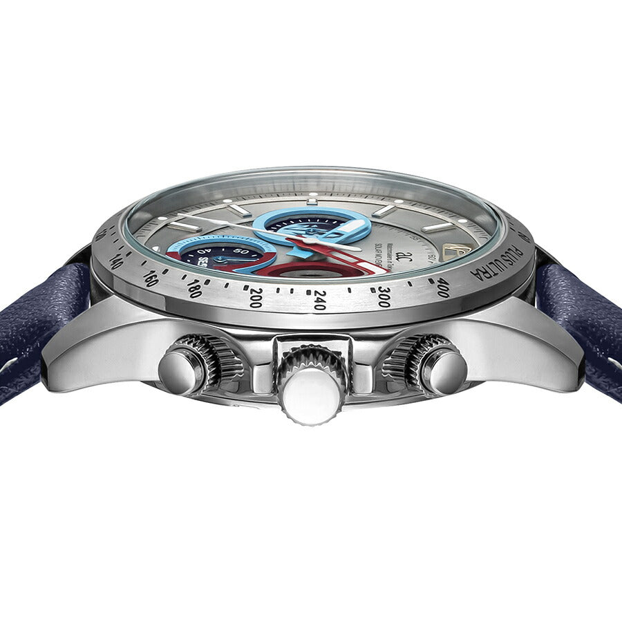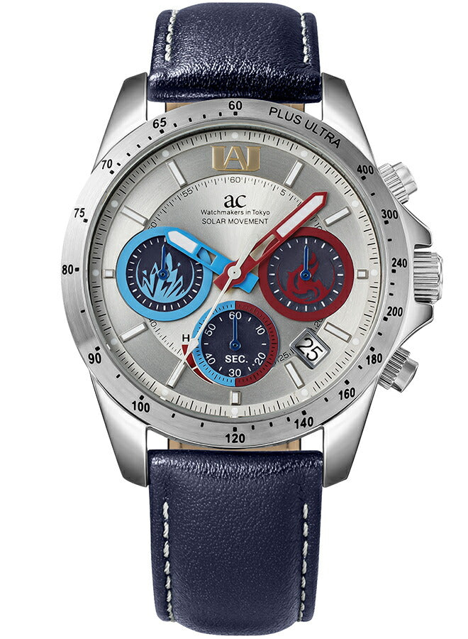 裏蓋にはヒーローネームと“個性”を英訳した “HALF-COLD HALF-HOT”、さらに校訓である “Plus Ultra” を刻印。12時位置には雄英高校の校章「U.A.ロゴ」をあしらい、作品の世界観を細部にまで落とし込んでいます。