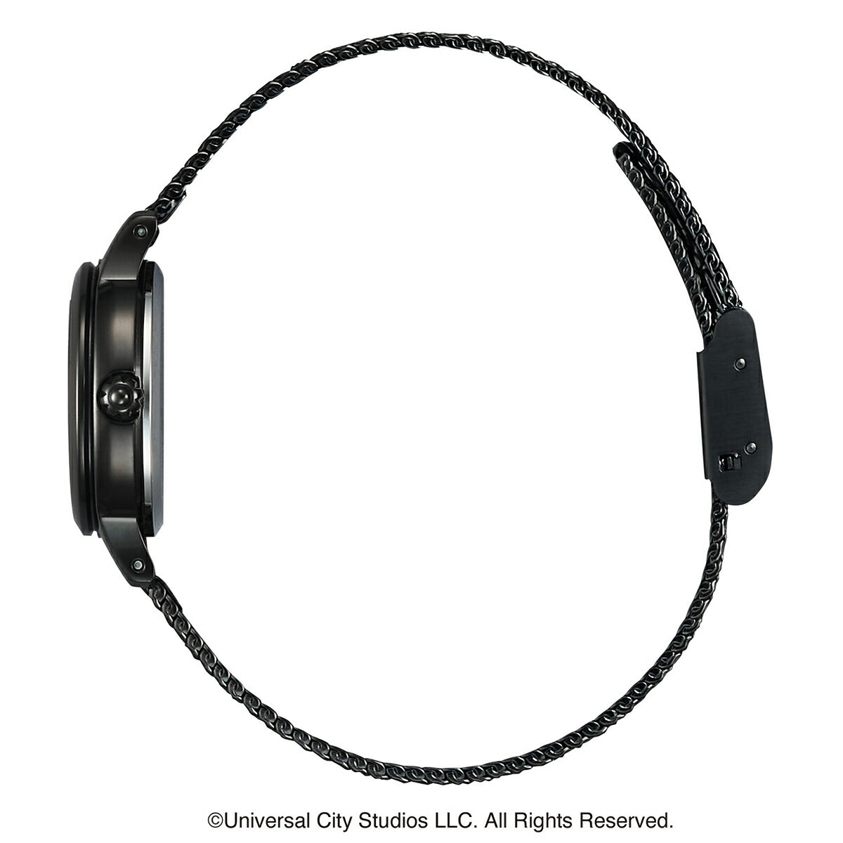 シンシア・エリヴォが演じる“悪い魔女”「エルファバ」をイメージ。文字板に「エルファバ」の森の隠れ家をイメージした植物を描き、西側(左)から広がるグリーンのグラデーションで、繊細に揺れ動く「エルファバ」の心を表現しました。インデックスは、「エルファバ」のほうきや爪をイメージしたデザイン。7時の位置にはグリーンのクリスタルガラスをあしらい、5分毎の切分もグリーンにしています。2時の位置には物語に登場する「フライング・モンキー」が描かれています。裏ぶたには『ウィキッド 永遠の約束』の原題『Wicked: For Good』のロゴを刻印。「エルファバ」のシルエットをあしらったスペシャルBOX付きです。