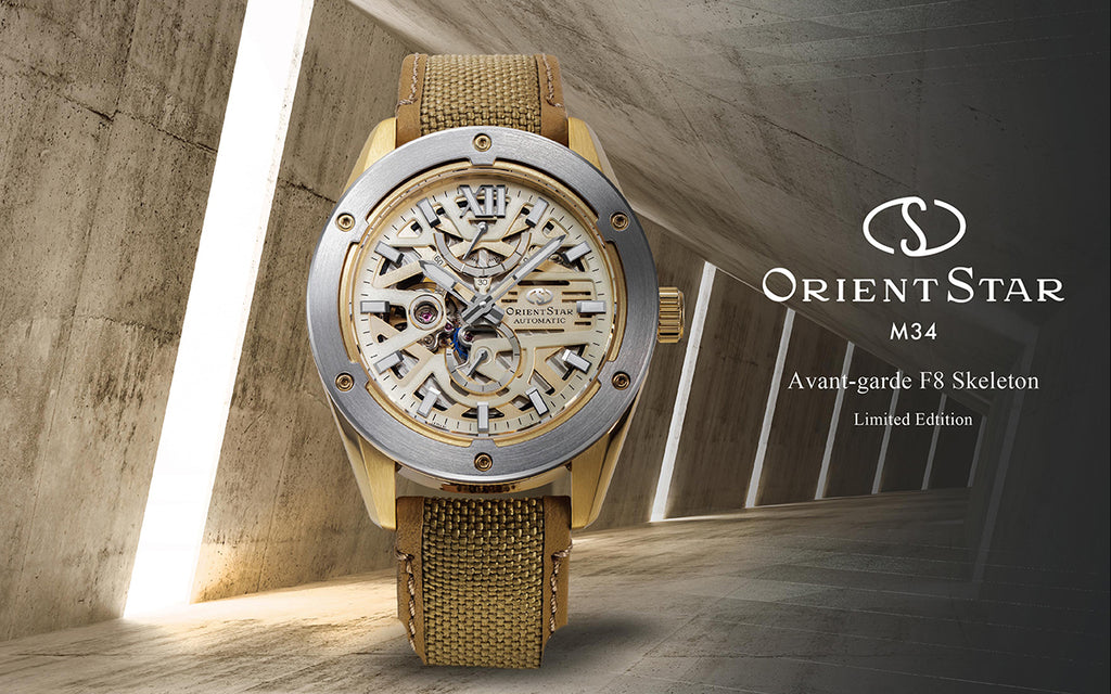 ORIENT STAR M Collectionsより、大胆なデザインとシリコン製がんぎ車を搭載する先進の自動巻きムーブメントを融合した、ゴールド色によるラグジュアリー感を表現したモデルが登場です。