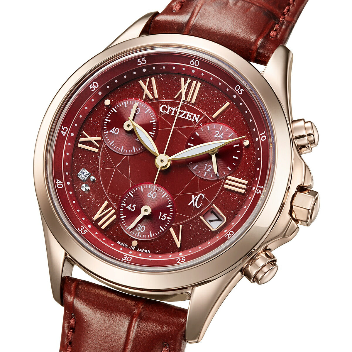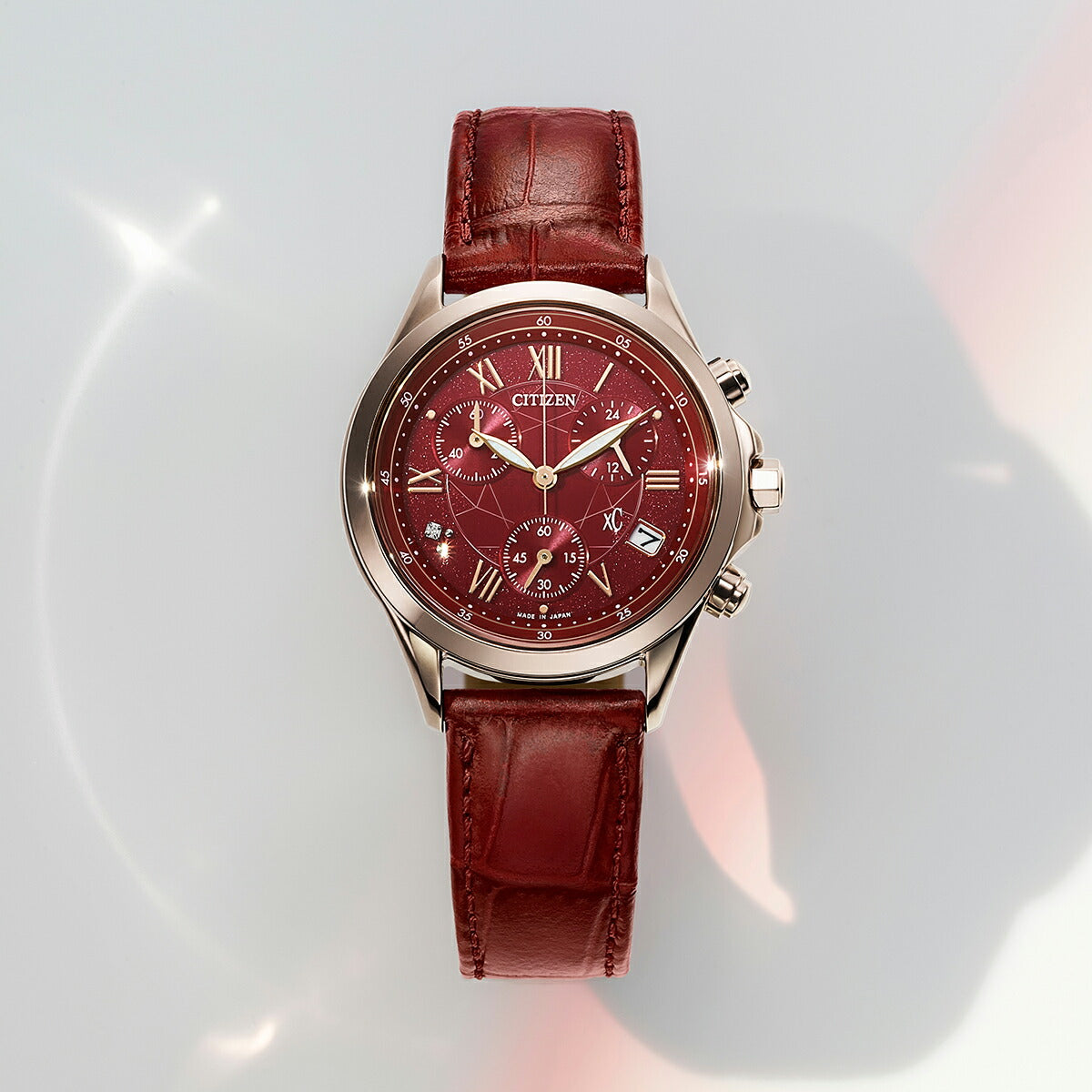 《2月5日発売/予約》シチズン xC ベーシックコレクション 限定モデル ダークレッド FB1405-15W レディース ソーラー クロノグラフ ダイヤ入りダイヤル 革ベルト