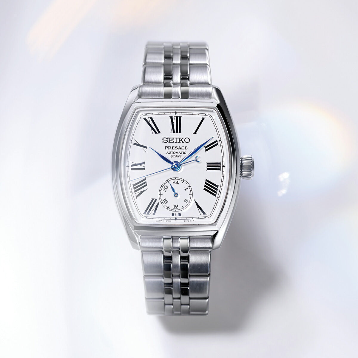 日本の伝統技法と現代的なデザインを融合させた、セイコー プレザージュ クラシックシリーズから、トノー形ケースを採用したクラフツマンシップモデルが登場。琺瑯ダイヤルならではの奥行きある表情と、腕元に自然と馴染むフォルムが魅力の一本です。