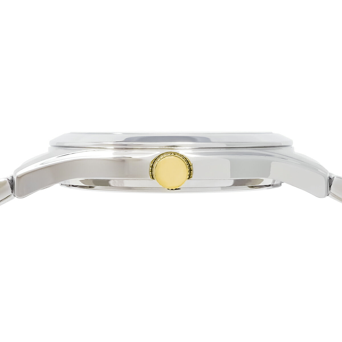 放射状に広がるサンレイ仕上げの文字盤は、光の角度によってやわらかく表情を変え、ゴールドカラーのインデックスと針が上質感を演出。シンプルな3針デザインで、スーツスタイルはもちろん、ジャケットやきれいめカジュアルにも自然に馴染みます。