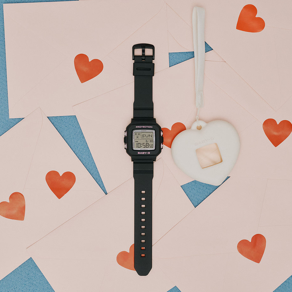 自分の好みに合わせて使い方が楽しめる「BABY-G+PLUS」シリーズから、ハート型の時計ホルダーを採用したポップなモデルです。
