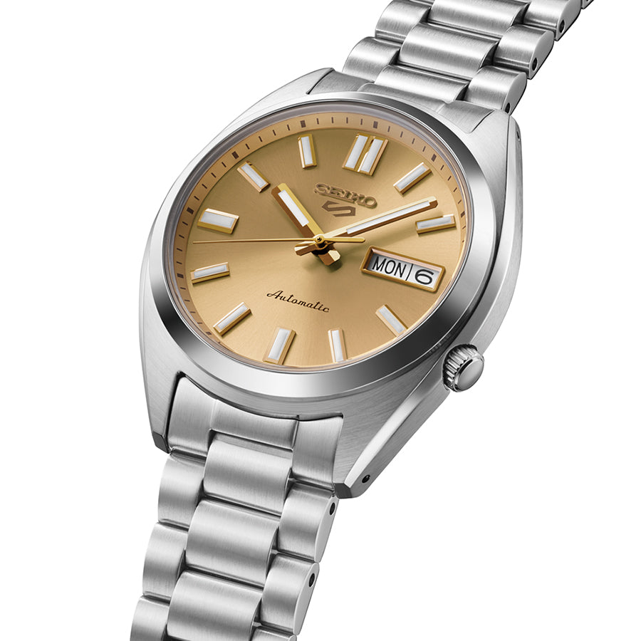 セイコー 5スポーツ SNXSシリーズから、存在感のあるゴールドダイヤルモデルが登場です。