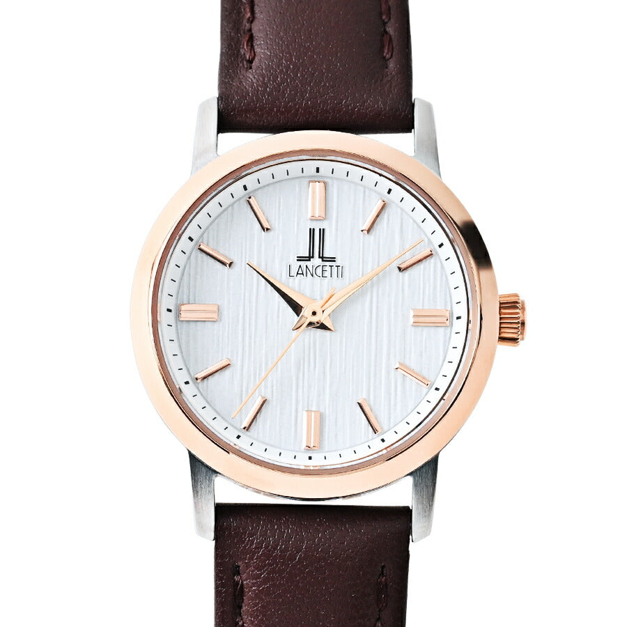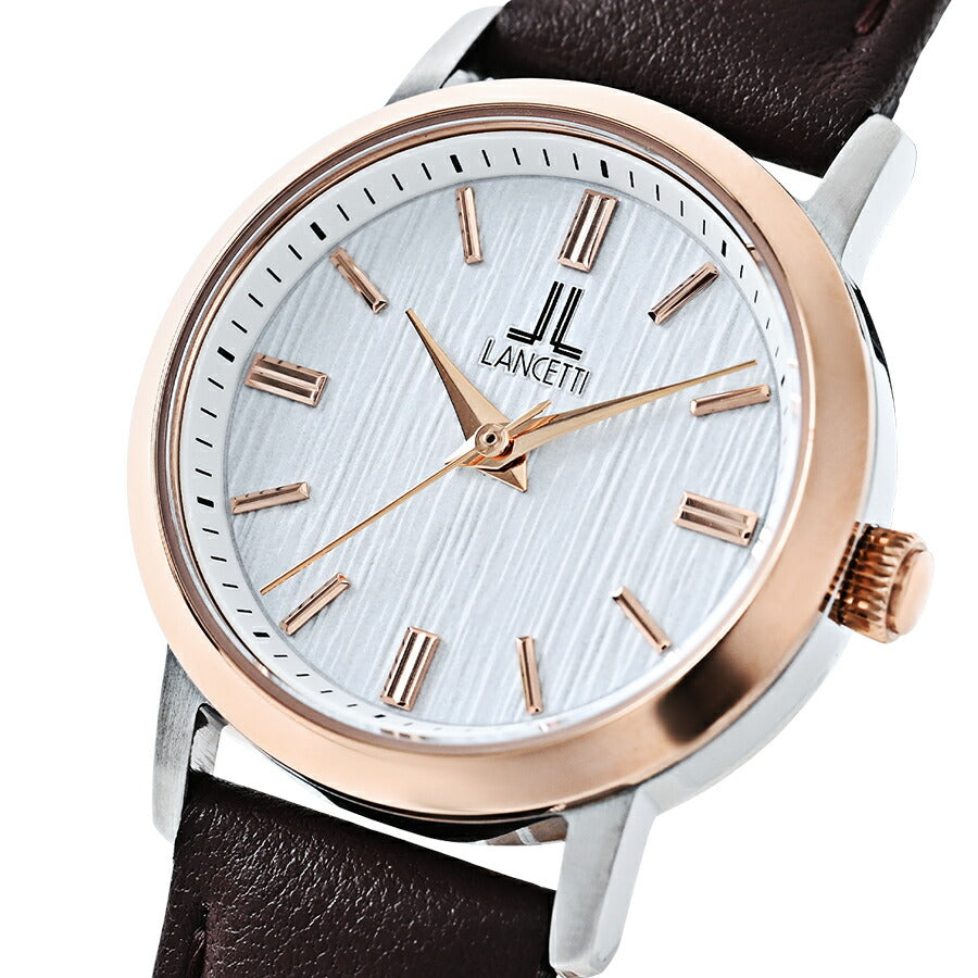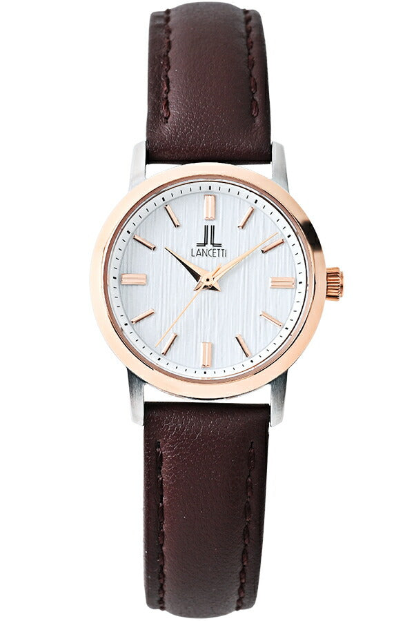 ランチェッティ ペア ソーラー 3針モデル LT6882-WH2 レディース ホワイトダイヤル ゴールドアクセント ブラウン 革ベルト