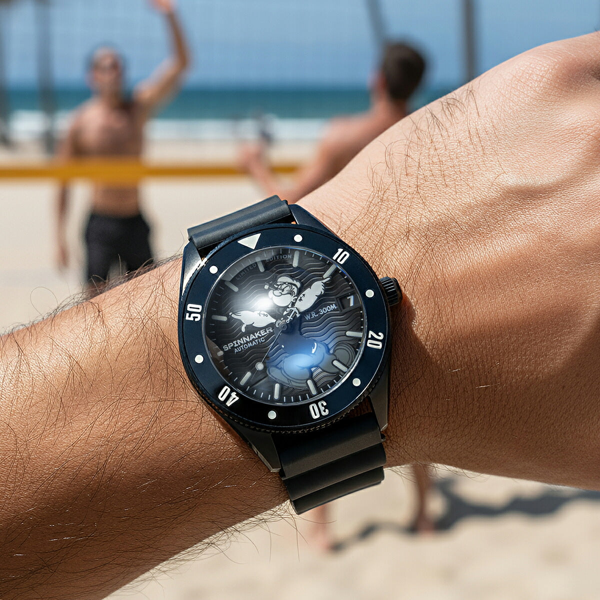 キャラクターウォッチでありながら、しっかり“道具感”もある一本。スピニカーらしい堅牢さと、ポパイのユーモアが融合した、遊び心あふれる限定モデルです。