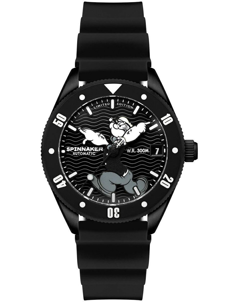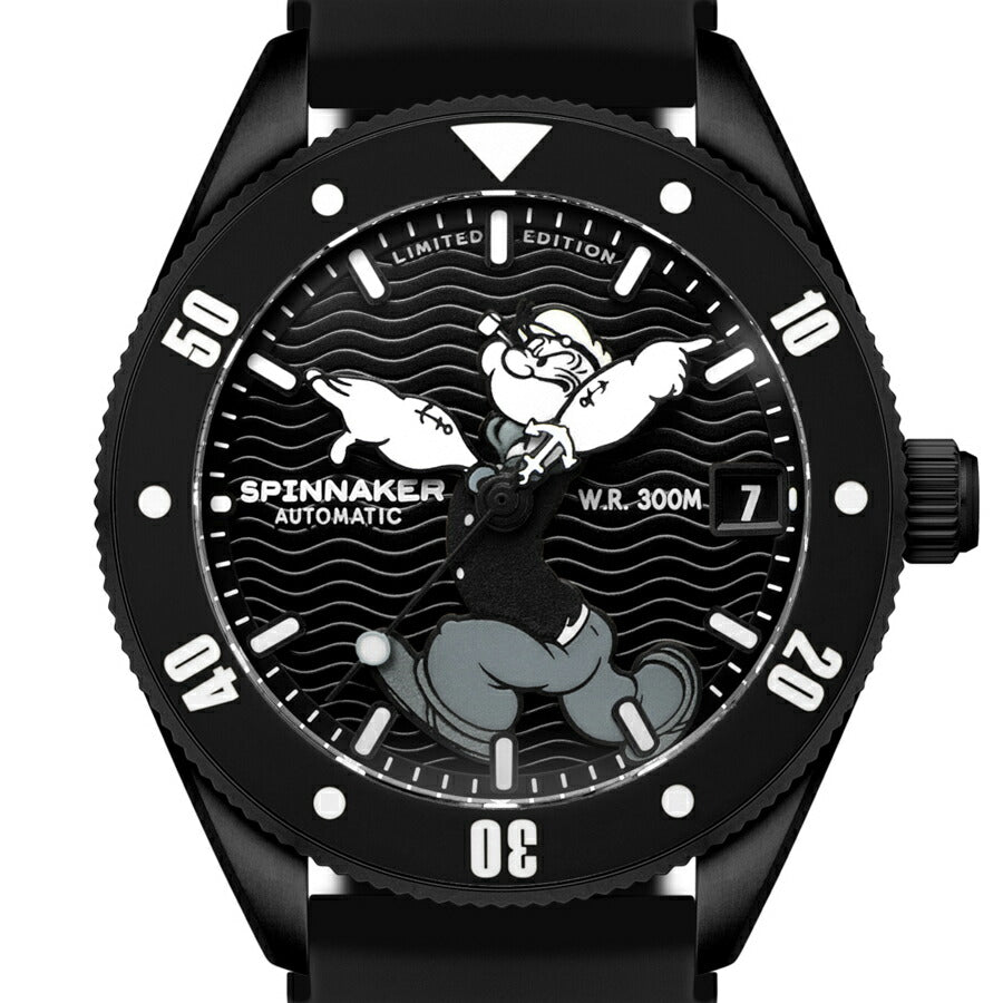 《1月30日発売》スピニカー チャレンジャー ポパイ コラボレーション 限定モデル アンカーアームズ SP-5163-03 メンズ メカニカル 自動巻 蓄光 ブラック 樹脂バンド