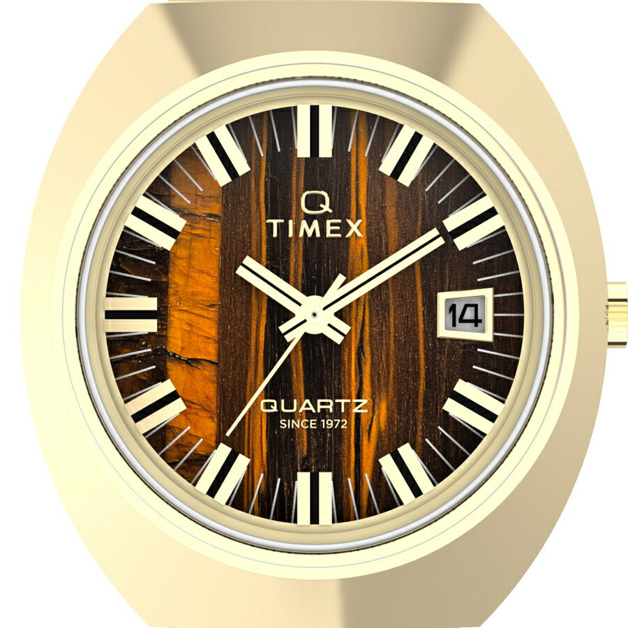 《11月7日発売/予約》タイメックス Q TIMEX 1972 タイムマシン 復刻モデル TW2Y45200 メンズ クオーツ 電池式 タイガーアイダイヤル ゴールド メタルバンド