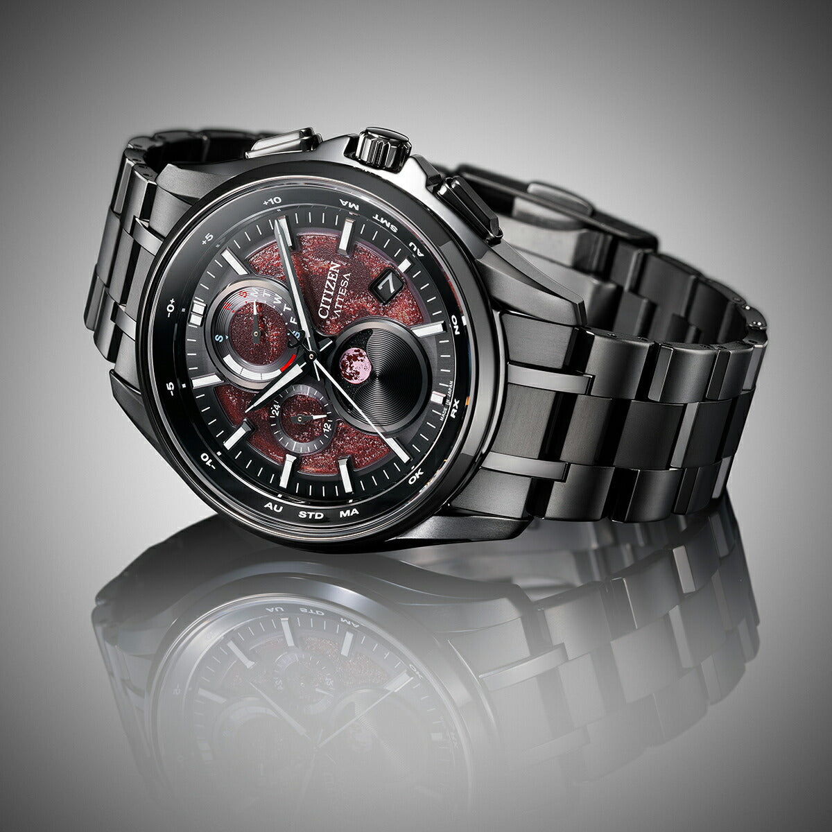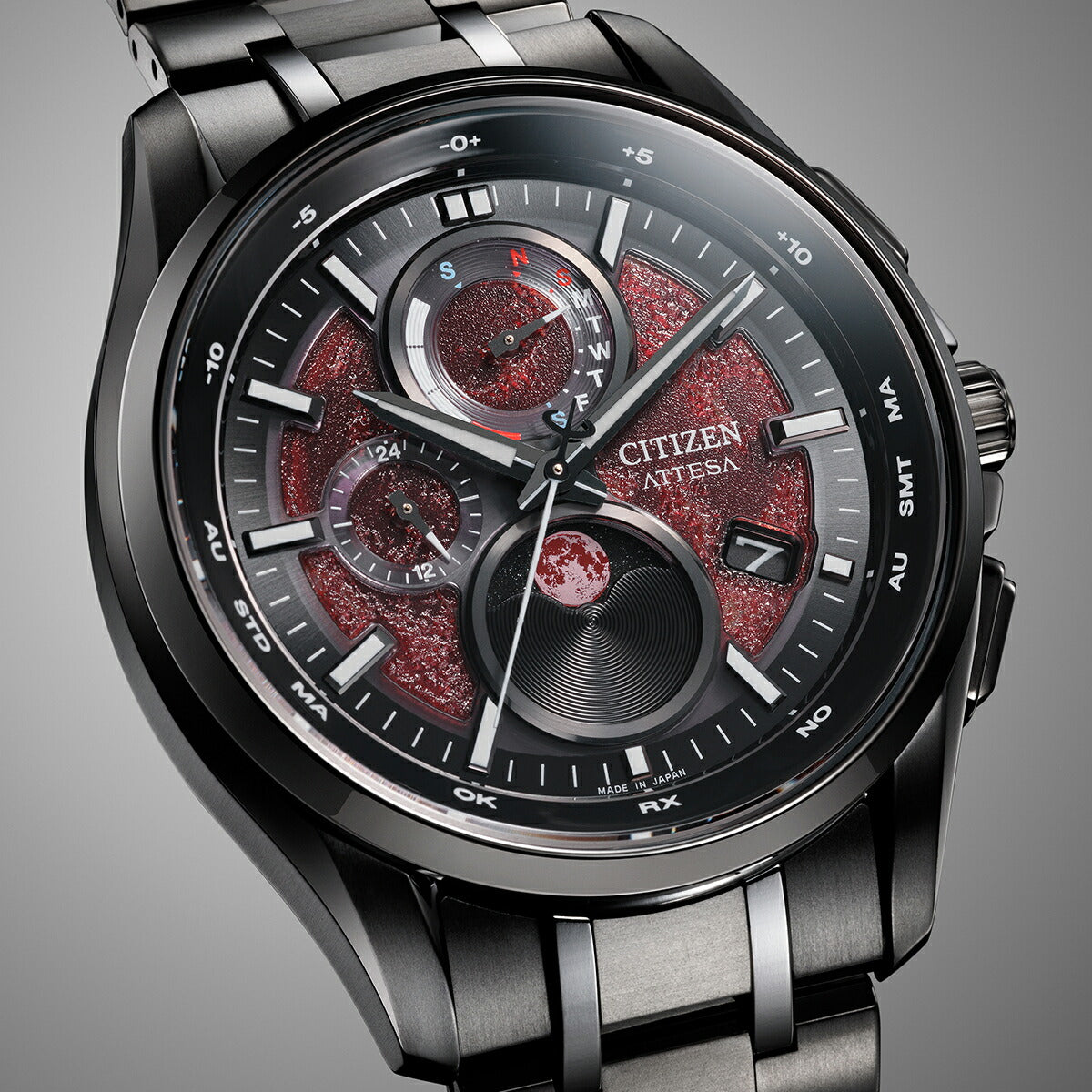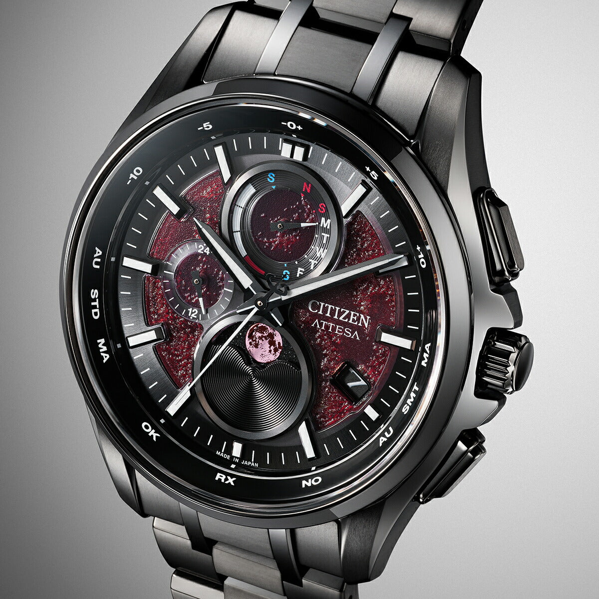 チタニウムで次世代を進み続ける、シチズン ATTESA(アテッサ)。地球、太陽、月が一直線に並ぶ皆既月食をテーマに、地球の影がつくりだす赤い月"Blood Moon"の神秘的な美しさをコンセプチュアルに表現した限定モデルです。