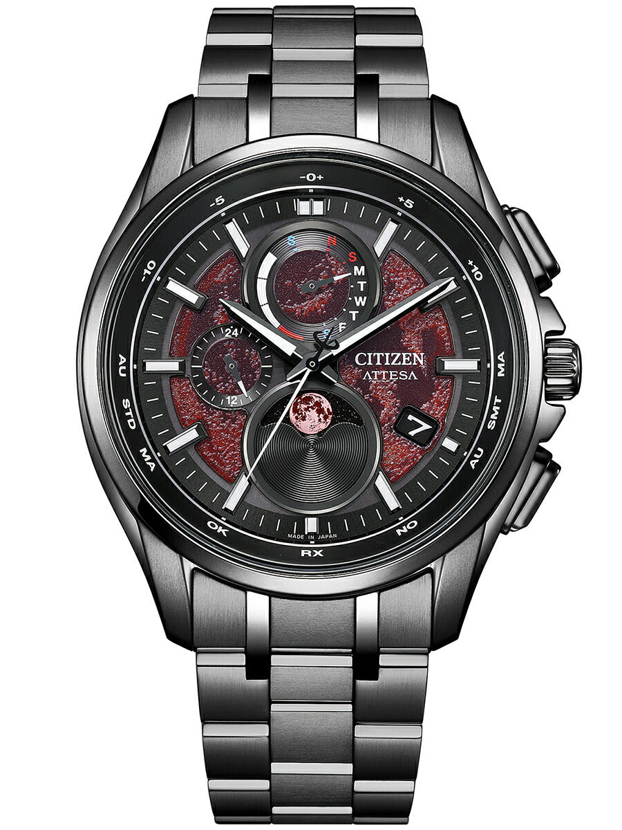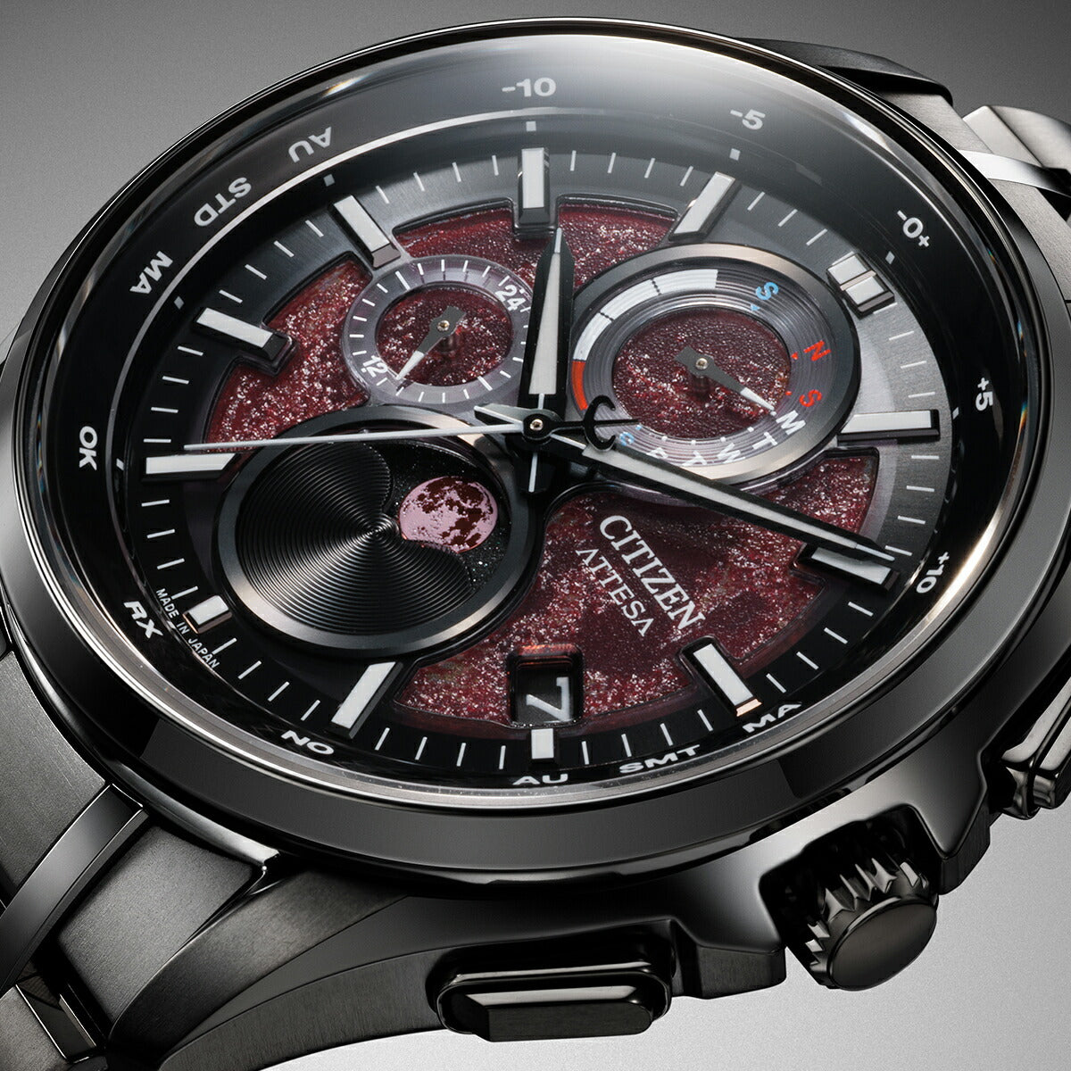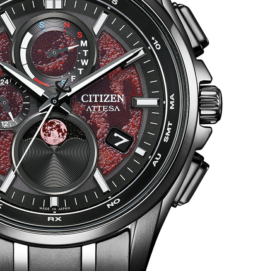 チタニウムで次世代を進み続ける、シチズン ATTESA(アテッサ)。地球、太陽、月が一直線に並ぶ皆既月食をテーマに、地球の影がつくりだす赤い月"Blood Moon"の神秘的な美しさをコンセプチュアルに表現した限定モデルです。