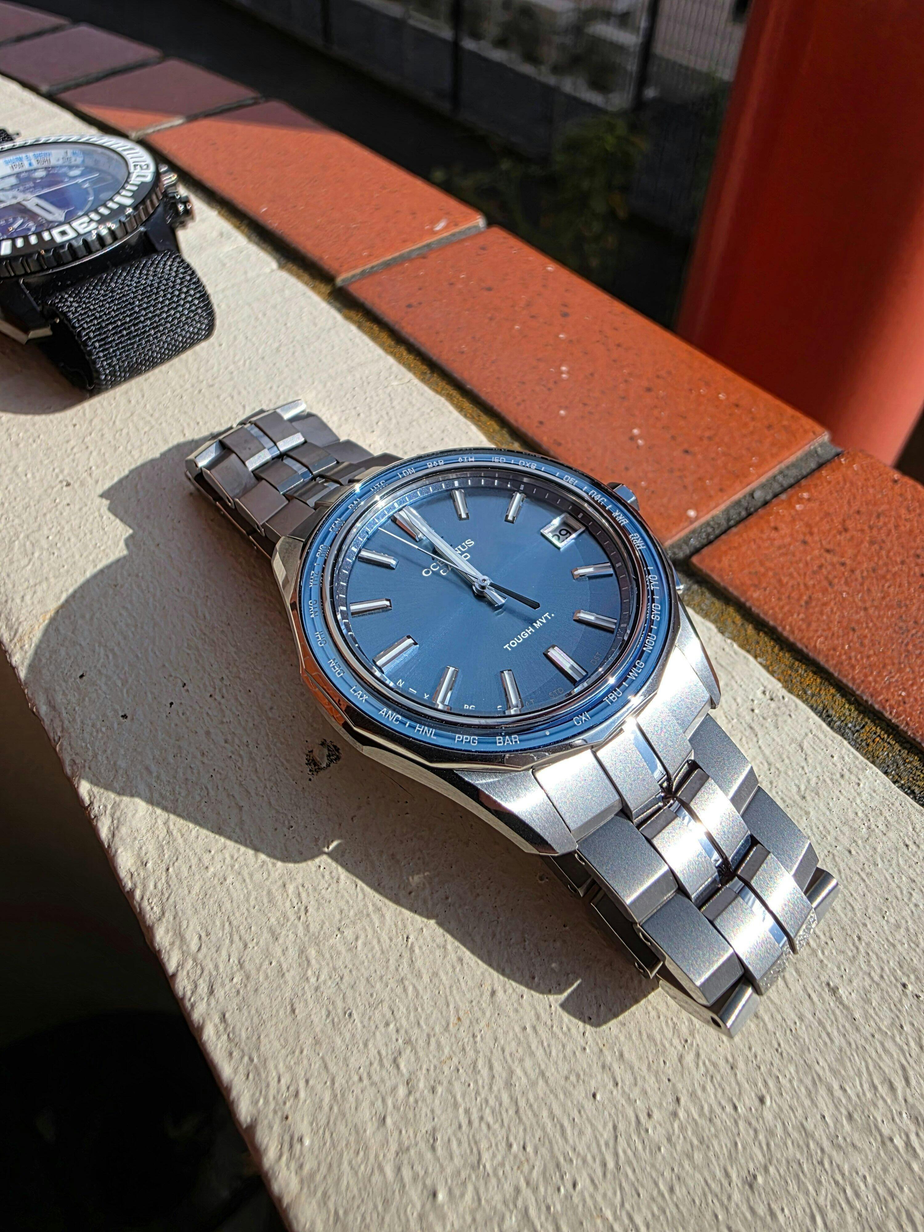 両面反射防止コーティング付きのサファイアガラスや、ザラツ研磨によるチタンケース、バンドの上質な仕上げなど、フラッグシップラインならではのこだわりをそのままに、時・分・秒針のシンプルな3針仕様で、美しさと高い視認性を実現しています。