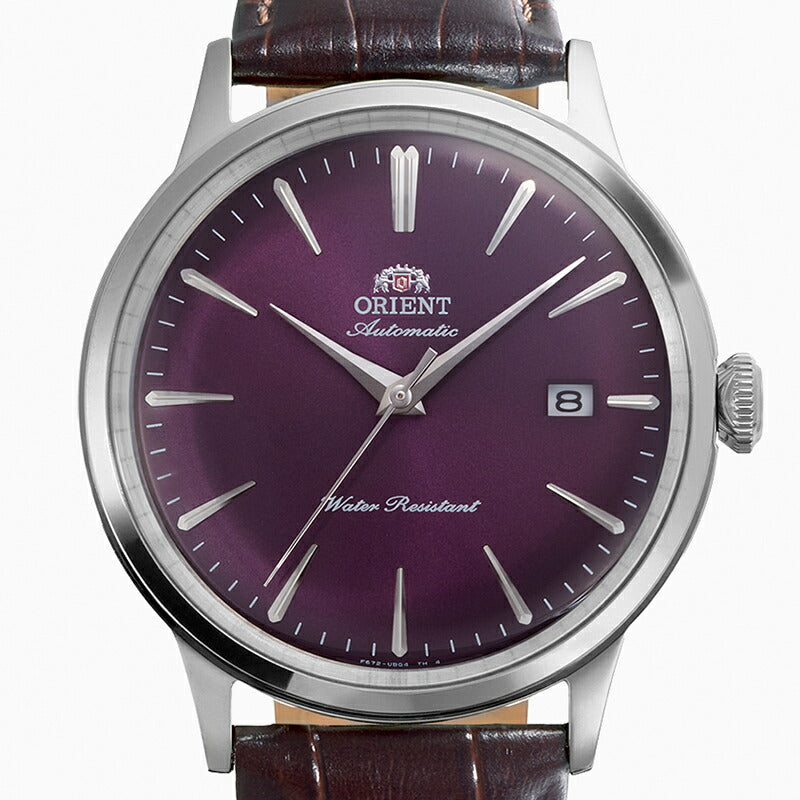 《2月26日発売/予約》オリエント バンビーノ 3針デイト RN-AC0032V メンズ 機械式 自動巻き パープルダイヤル ブラウン 革ベルト