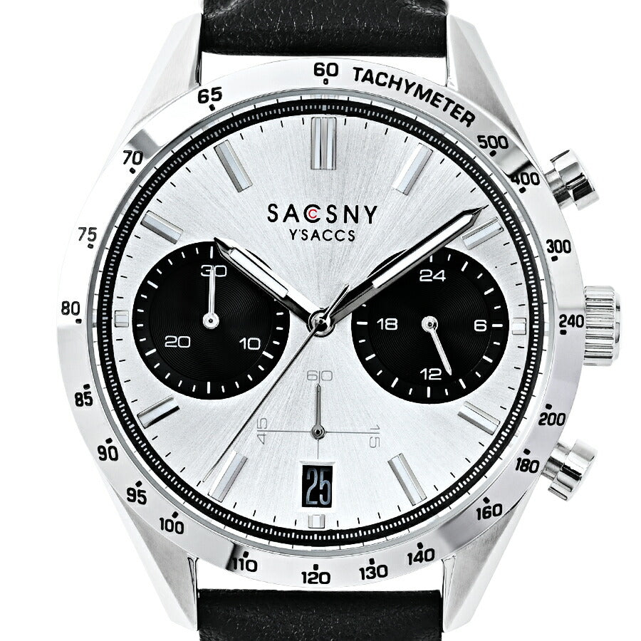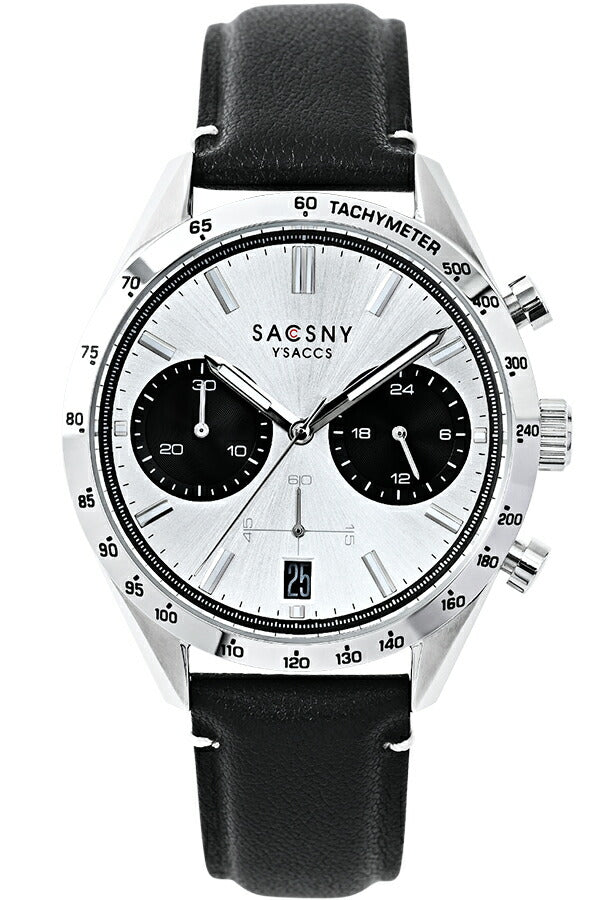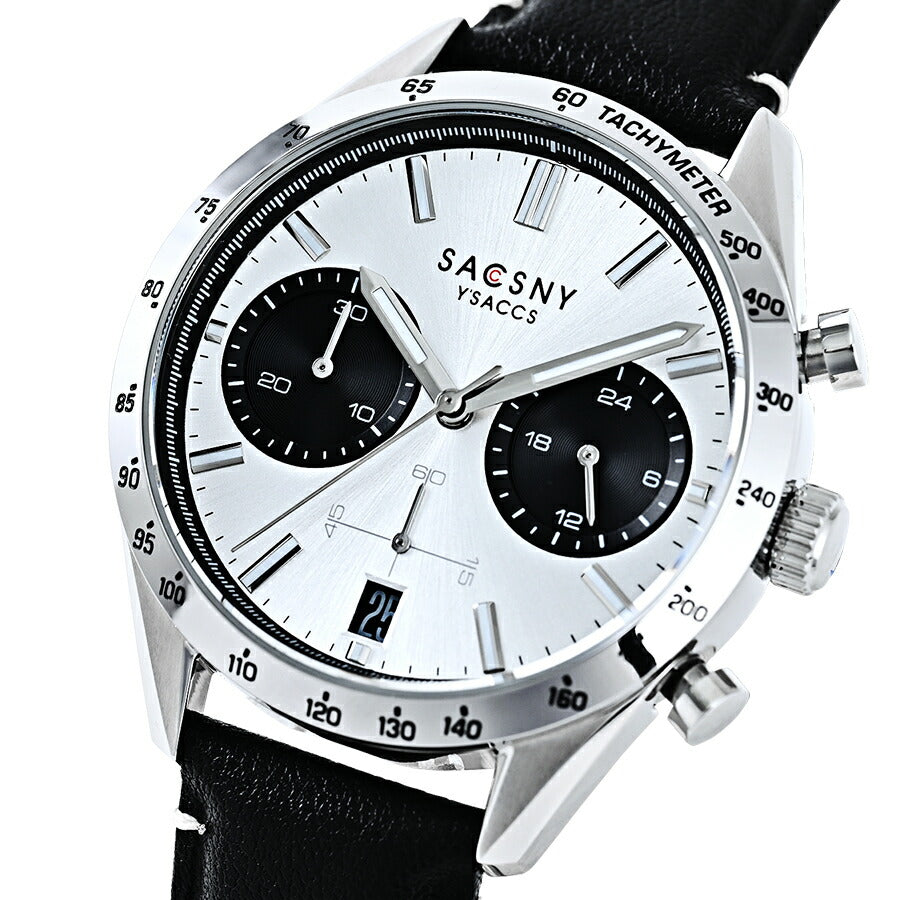 サクスニーイザック クオーツ クロノグラフ SY15221-WH メンズ 電池式 ホワイトダイヤル ブラック 革ベルト LB2026