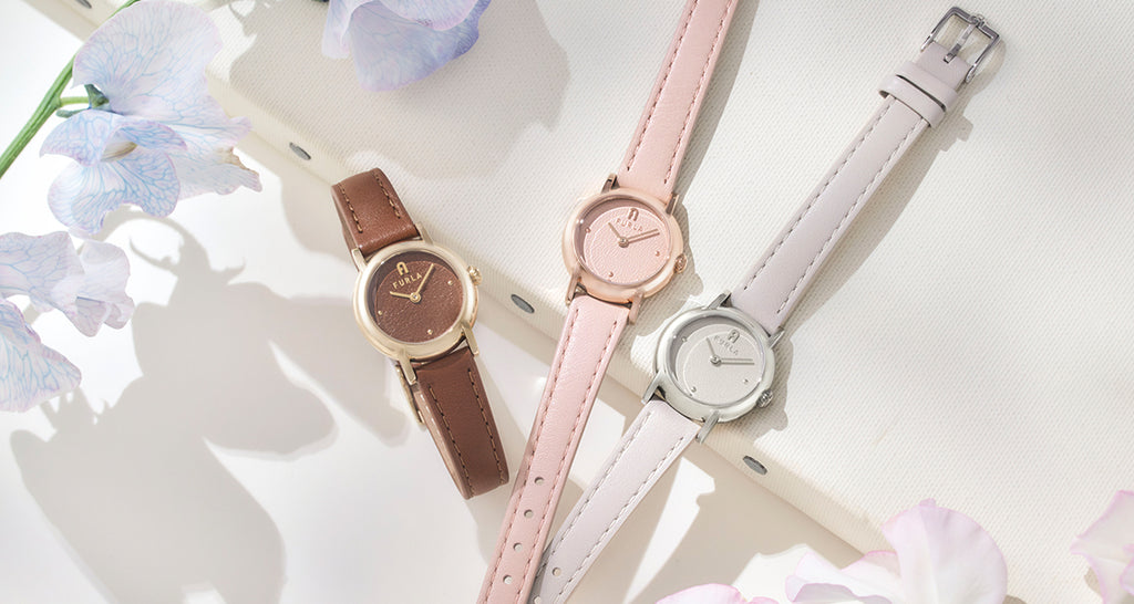 FURLAのウォッチは、時刻を告げるだけでなくブランドの持つクリエイティブさや高い質、細部へのこだわりが詰まっています。バッグと同じく、素材の持つ特性に合わせて仕上げが施され、それらが相まり一目でわかる“フルラ・デザイン”の調和を生み出しています。
