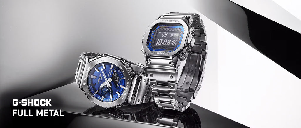 1983年の誕生以来タフネスを追求するG-SHOCKから、フェイスに鮮やかなブルーを採用したフルメタルシリーズです。