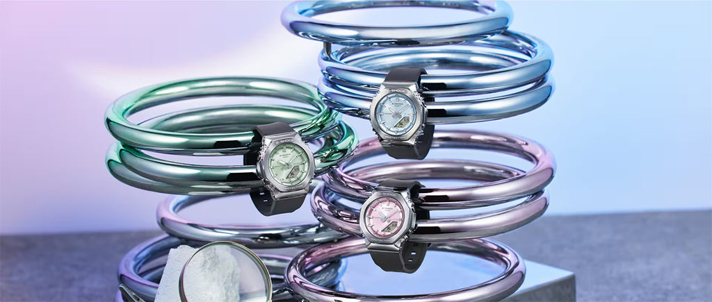 人気の八角形フォルムにトレンドのカラーダイアルを取り入れたGM-S2110です。