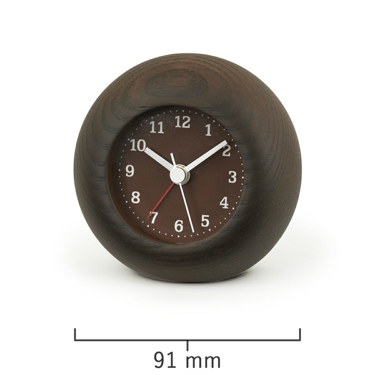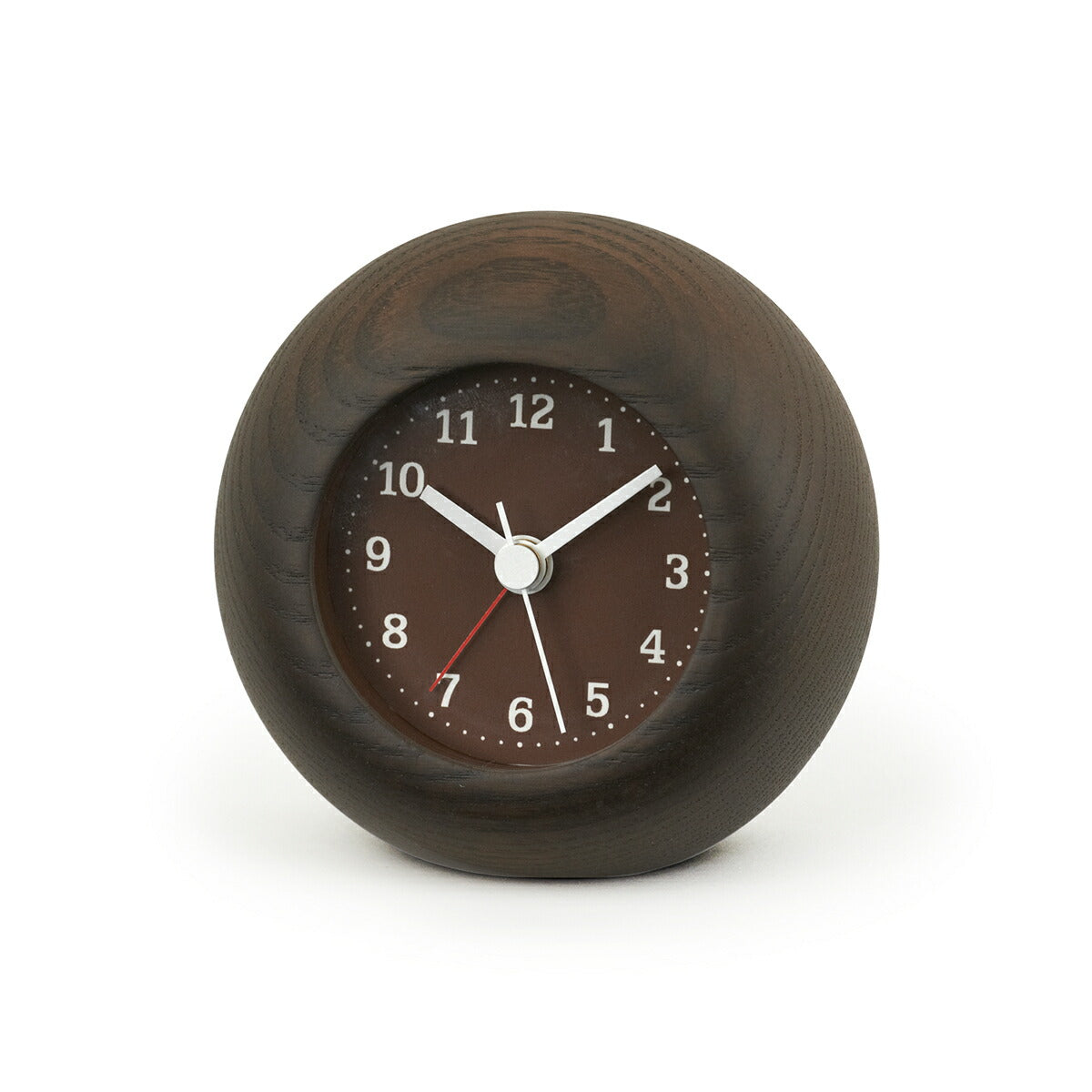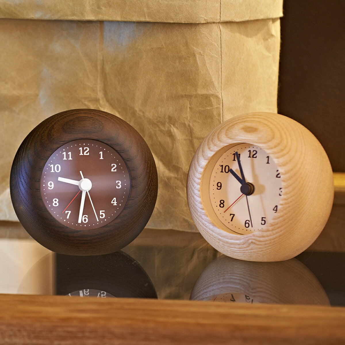 ゆっくり身体を休めて欲しいという想いを込めて、手のひらにコロンとおさまる、小さなアラーム時計をつくりました。時計枠には、大きな木目が魅力のアッシュ材を使用しています。木肌に触れると、少しデコボコした感触があるのも特徴です。