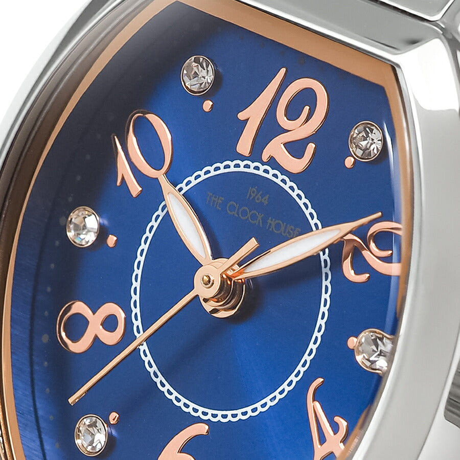 ザ・クロックハウスのレディースクオーツモデルから、トノー型ケースにアラビア数字を組み合わせた、上品な一本が登場です。