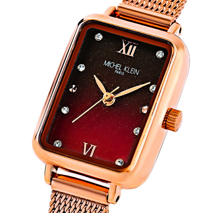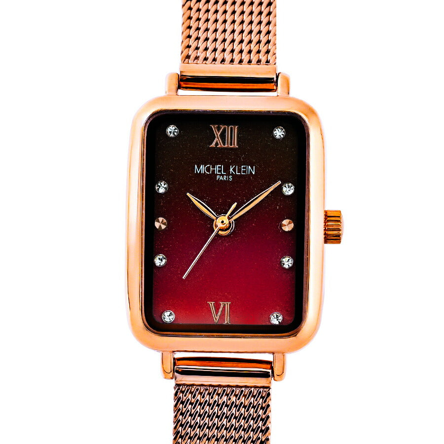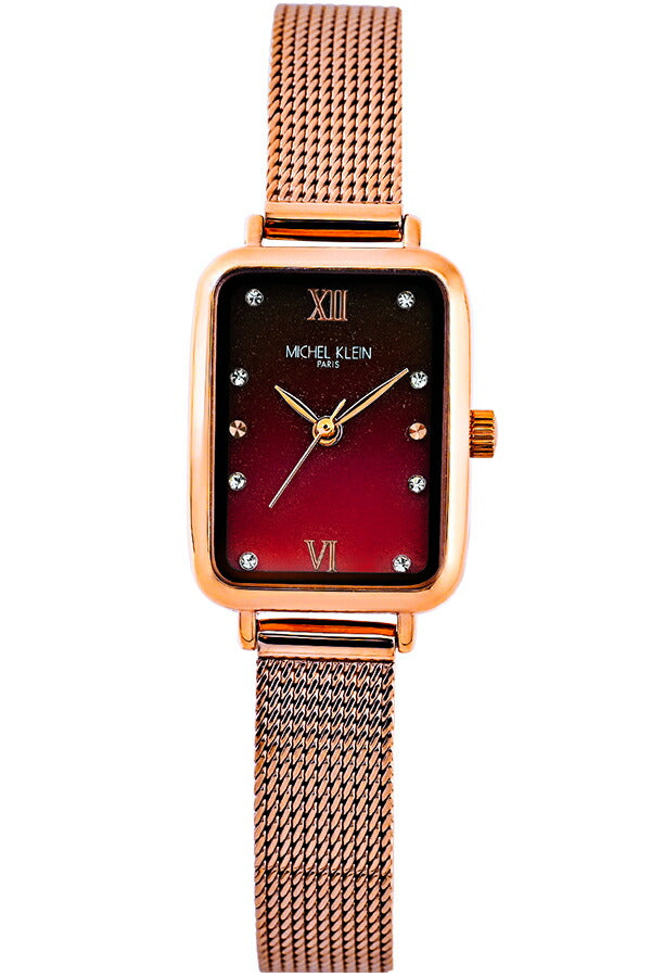 ミッシェルクラン 3針モデル MK16038-RE レディース クオーツ 電池式 レクタンギュラー レッドダイヤル ゴールド メッシュバンド LB2026
