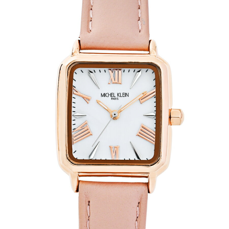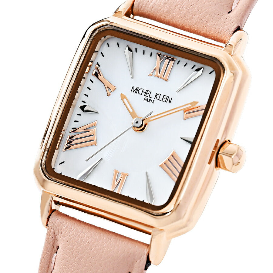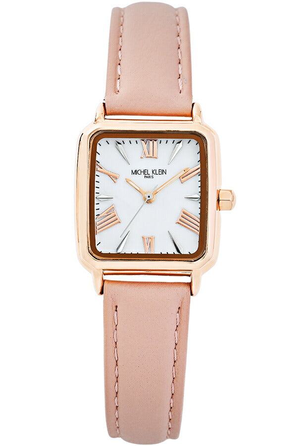 ミッシェルクラン 3針モデル MK16040-WH レディース クオーツ 電池式 スクエア シルバーホワイトダイヤル ピンク 革ベルト LB2026