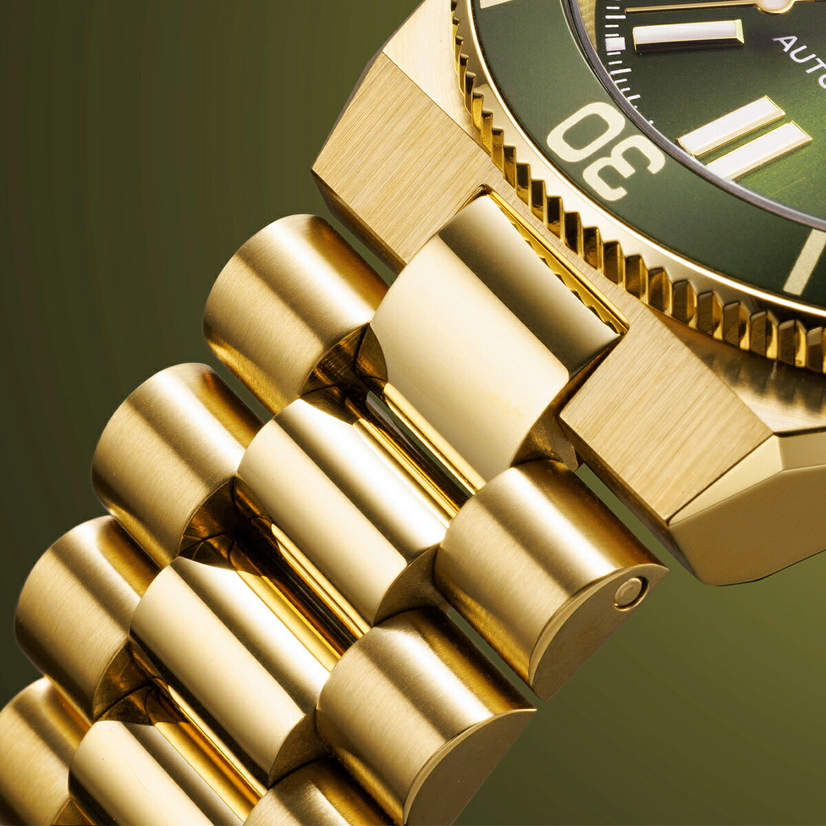着け心地にこだわった腕なじみの良い3列バンドに、上質な仕上げの中留板を採用し、高級感をプラス。