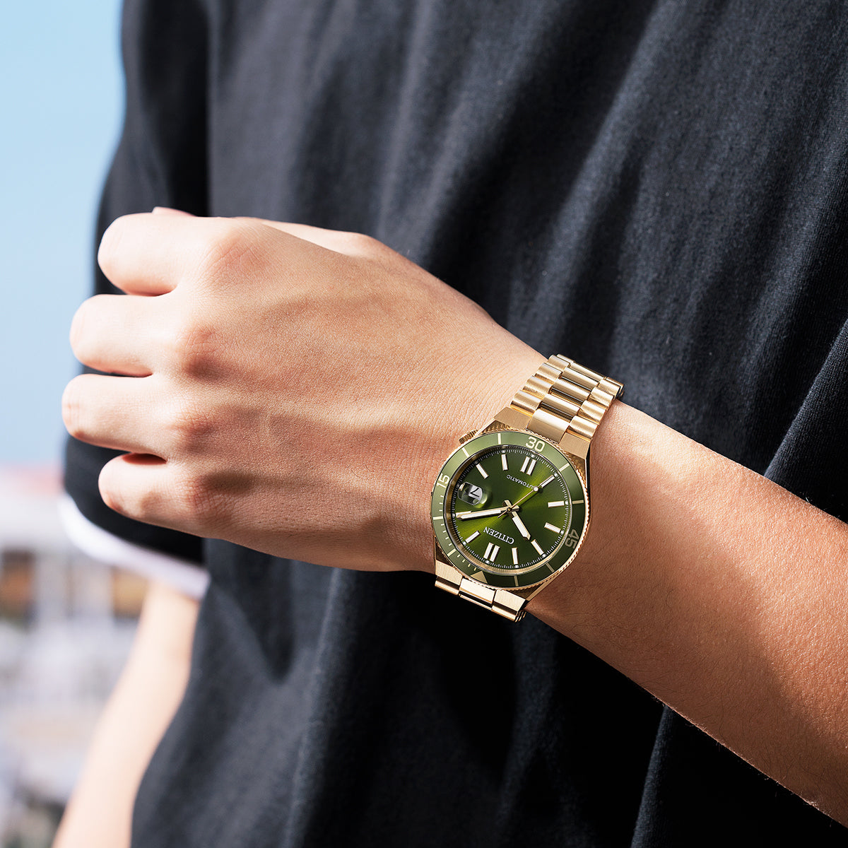 《3月5日発売》シチズンコレクション TSUYOSA ツヨサ スポーティスタイル Shore 海岸 NJ0232-53X メンズ メカニカル 機械式 自動巻き 3針 日付 グリーン ゴールド