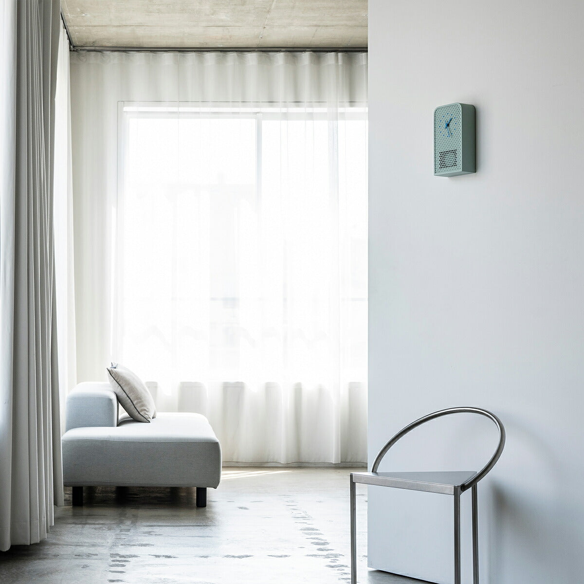 時計の指標部分は孔の位置に合わせた箇所に色を付けた、本体と一体感のある表現になっています。カラーはホワイト、アイボリー、ミントブルー、グリーンの4色で、インテリアに馴染みやすい落ち着いたトーンをベースにしており、針と指標にアクセントとなる強いカラーを加えています。