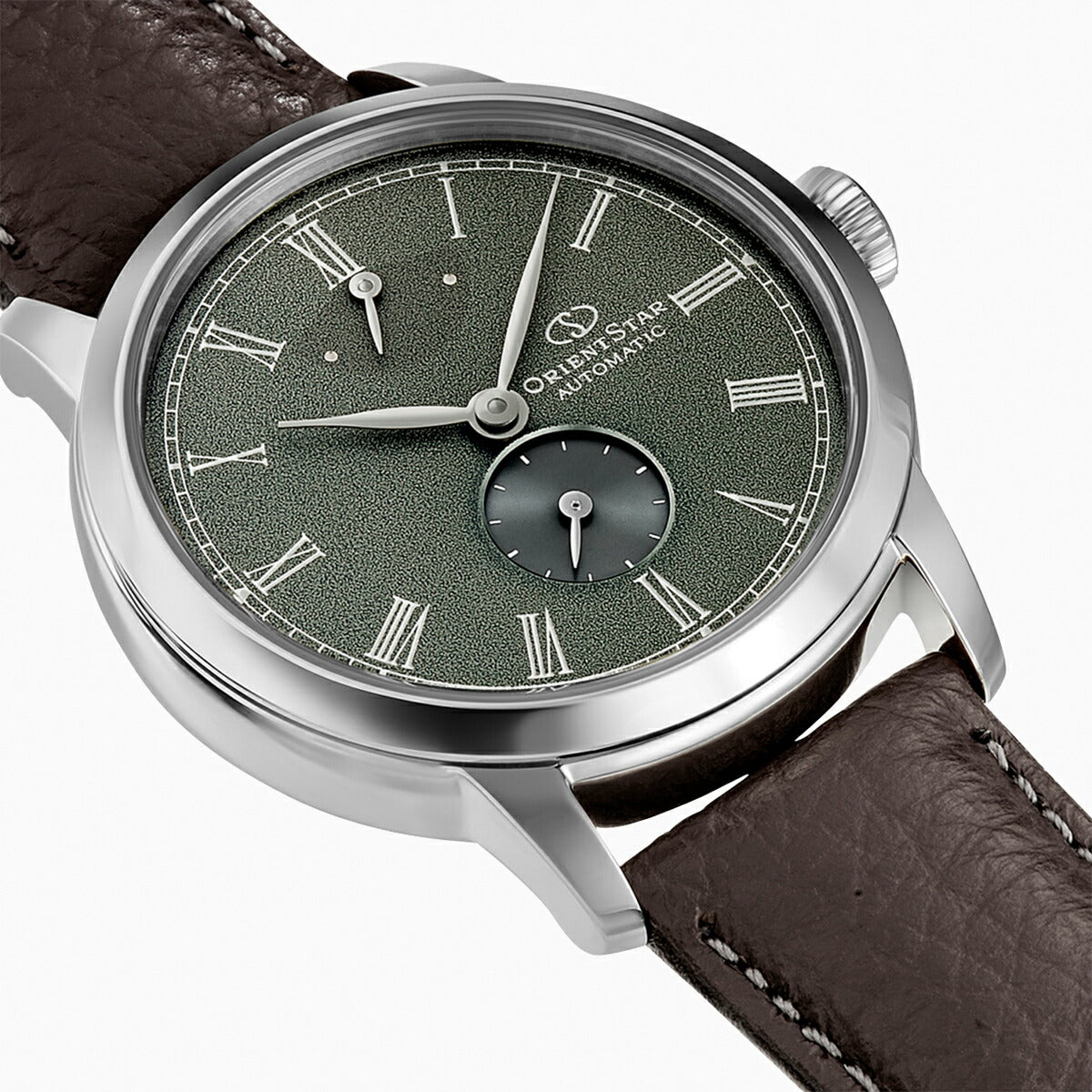 《4月23日発売/予約》オリエントスター M45 F7 スモールセコンド RK-BS0001E メンズ 機械式 自動巻き 砂地模様 グリーンダイヤル ブラウン 革ベルト 日本製