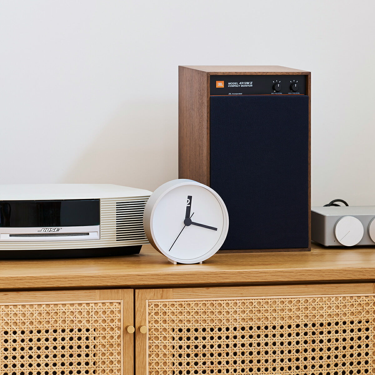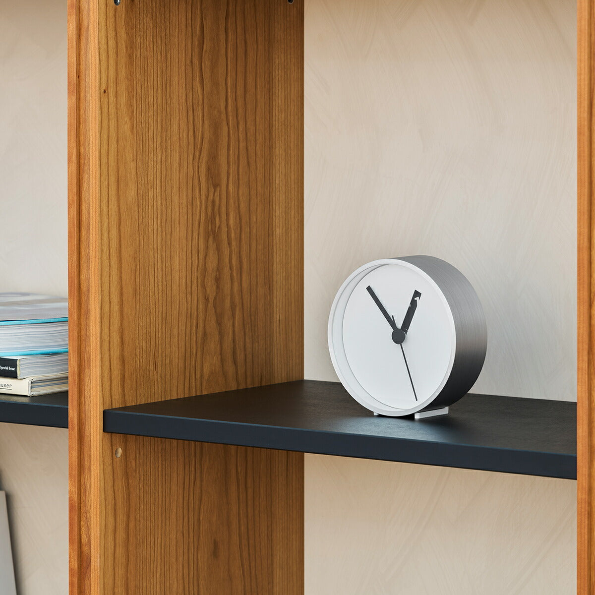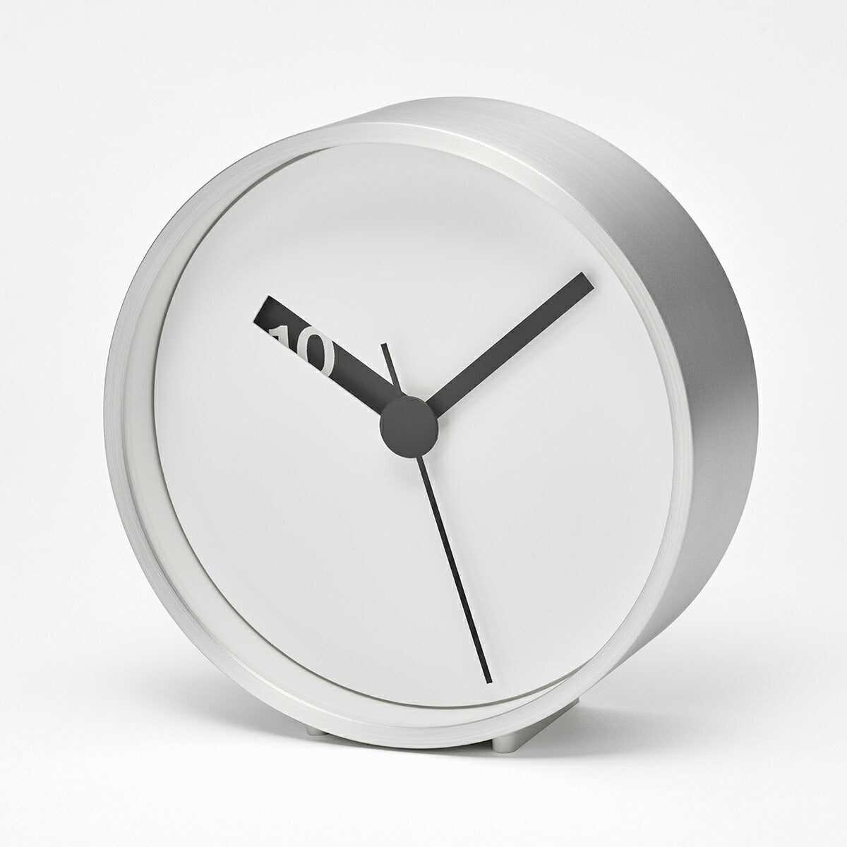 発売当時から現在まで長きにわたり愛されているブランドアイコンモデル、エクストラノーマルがクロックになって再登場です。一目見たその印象は文字盤に3本の針だけのシンプルなものです。ですがその特徴は四角く切り取られた時間の「針」からその時になると表れてくる数字にあります。それらは実際には文字盤が2層構造であることで上層の時針の小窓から下層の数字が見えます。