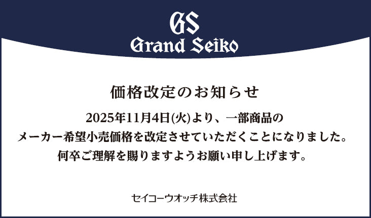 GS9 Clubについて | 当店にて2022年1月11日以降にご購入のグランドセイコーは「GS9 Club」にご登録いただけます。(入会金・年会費は無料) ※GS9 Clubとはグランドセイコー正規販売店にてグランドセイコーをご購入いただいたお客様がグランドセイコーとの絆をより深めていただくためのオーナーズクラブです。 |
