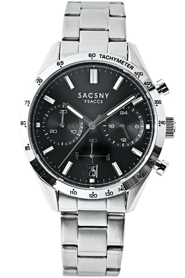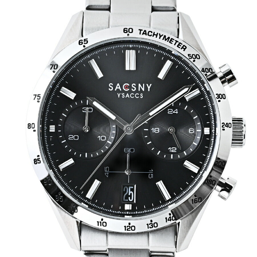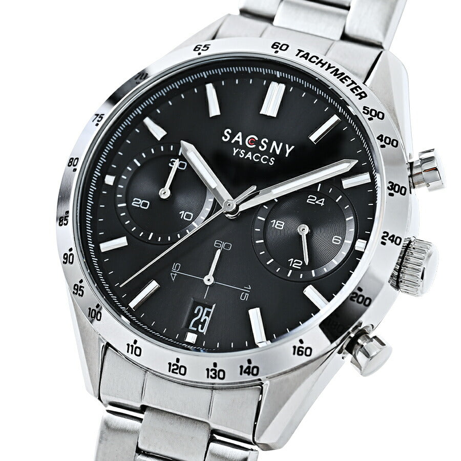 サクスニーイザック クオーツ クロノグラフ SY15219-BK メンズ 電池式 ブラックダイヤル メタルバンド LB2026