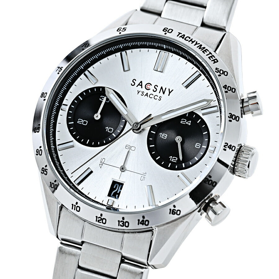 サクスニーイザック クオーツ クロノグラフ SY15219-WH メンズ 電池式 ホワイトダイヤル メタルバンド LB2026