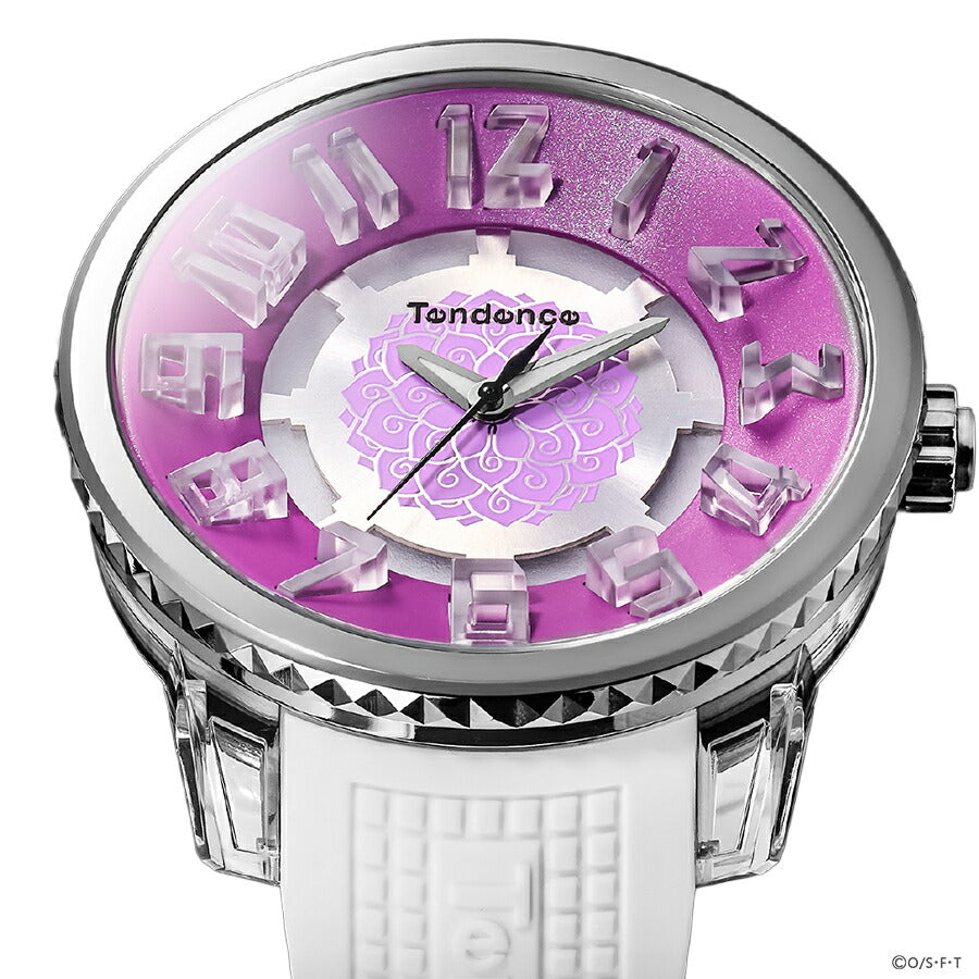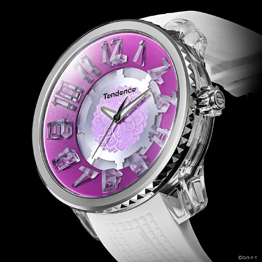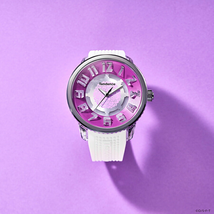 ダイヤル中央には、ロビンの能力である“ハナハナの実”をモチーフにしたアートをデザイン。落ち着いたパープルのカラーリングが、彼女の優雅さと内なる強さを表現。ホワイトのシリコンバンドとのコントラストが上品で、ファッションウォッチとしても高い完成度を誇ります。