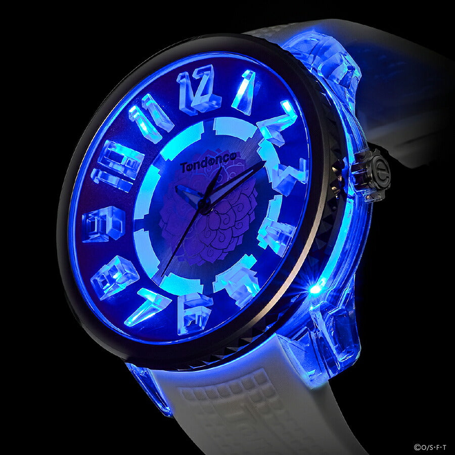 ベースとなるのは、テンデンスの代表作「FLASH(フラッシュ)」。インパクトのあるビッグフェイスと立体的なインデックスに加え、7色+レインボーに輝くLEDライトを搭載した、遊び心あふれるモデルです。